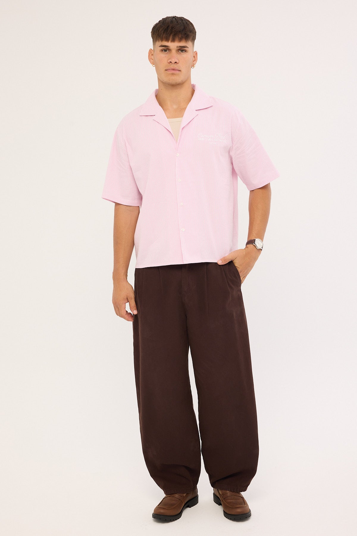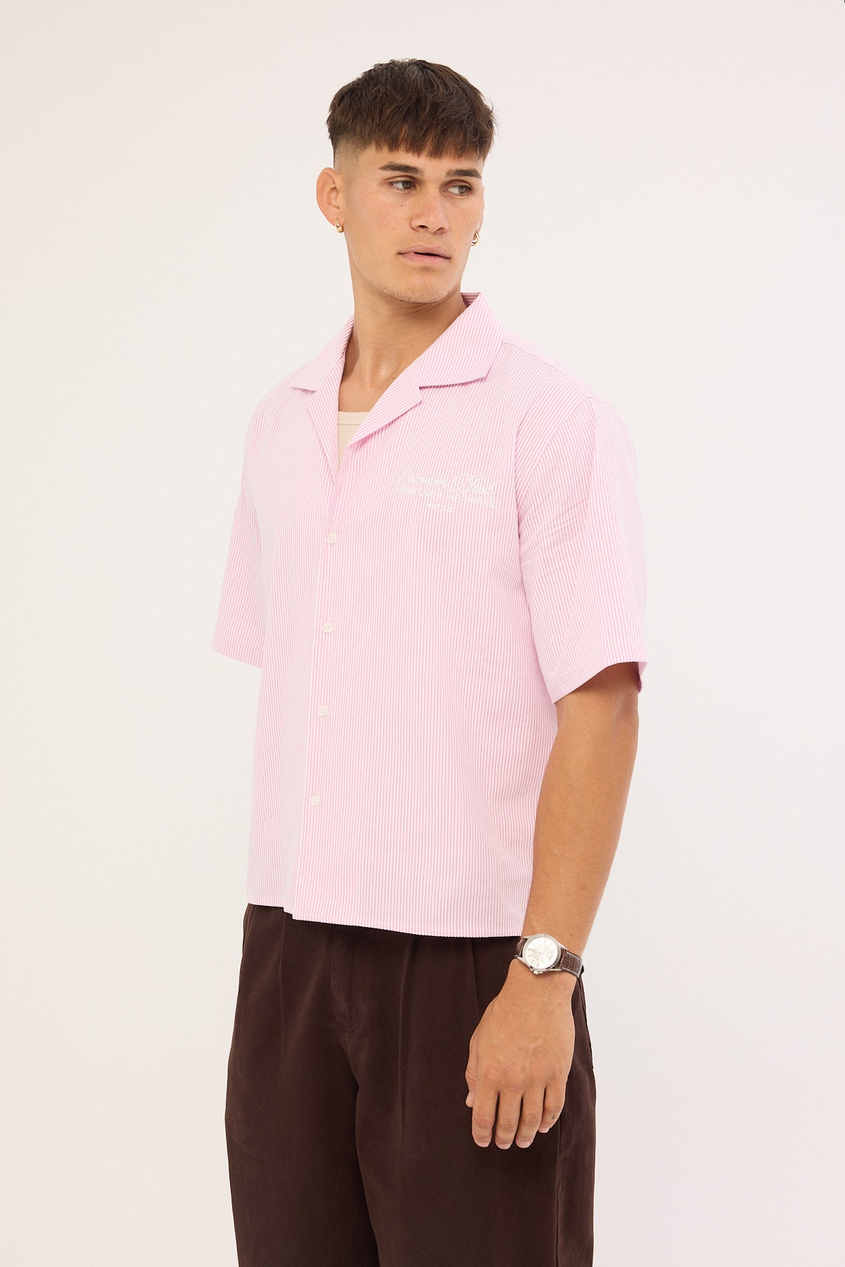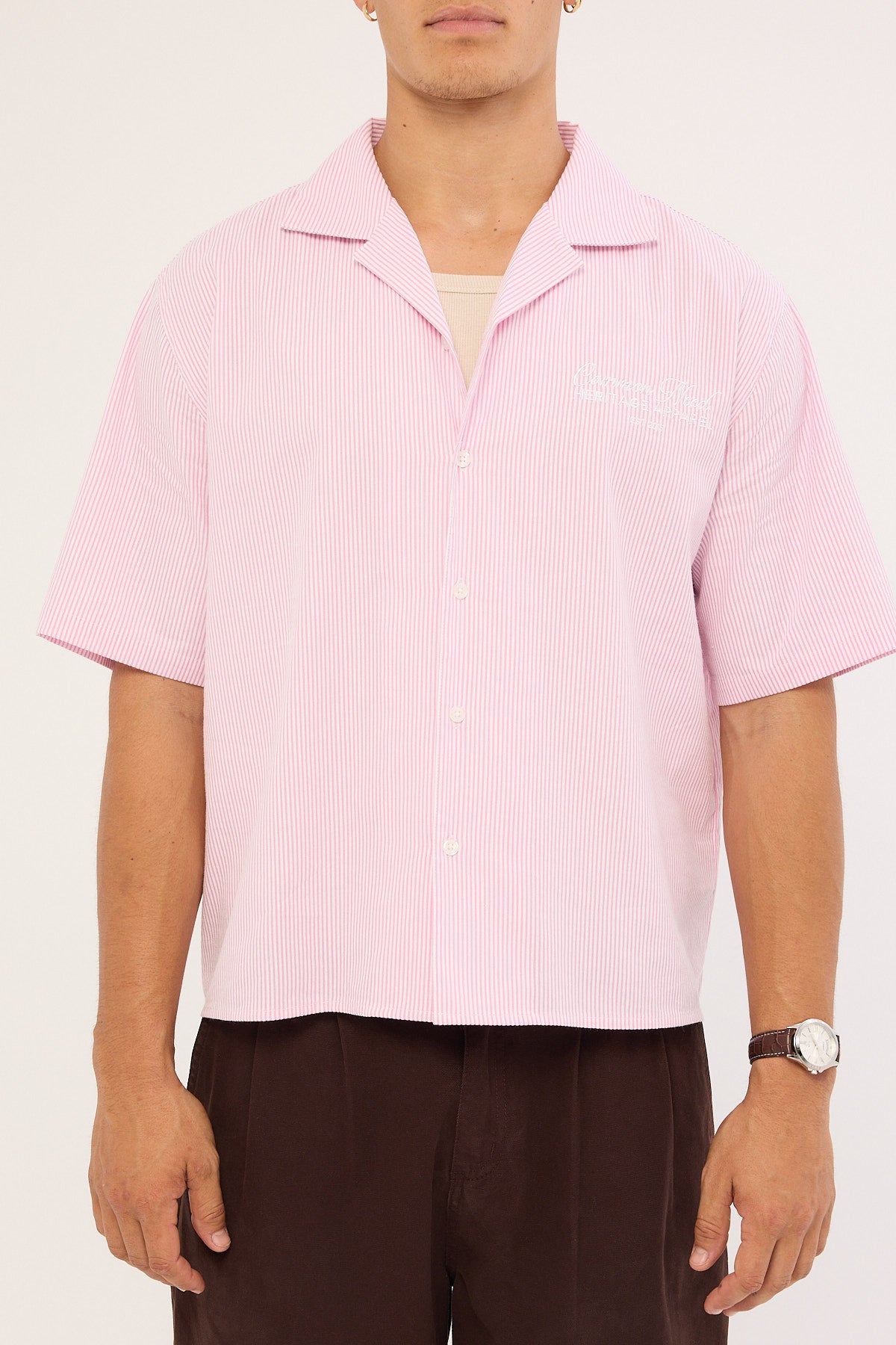 Royalty Boxy Cropped Resort Shirt Pink Stripe