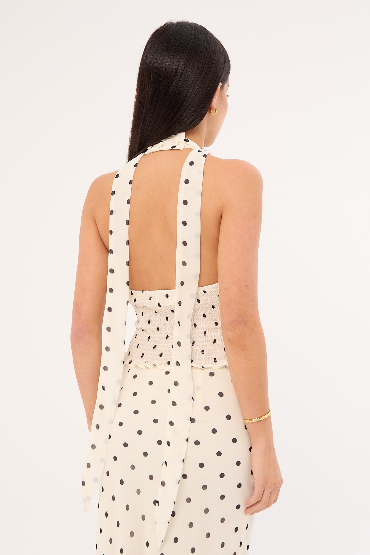 Polka Wish Halter Top Cream Print