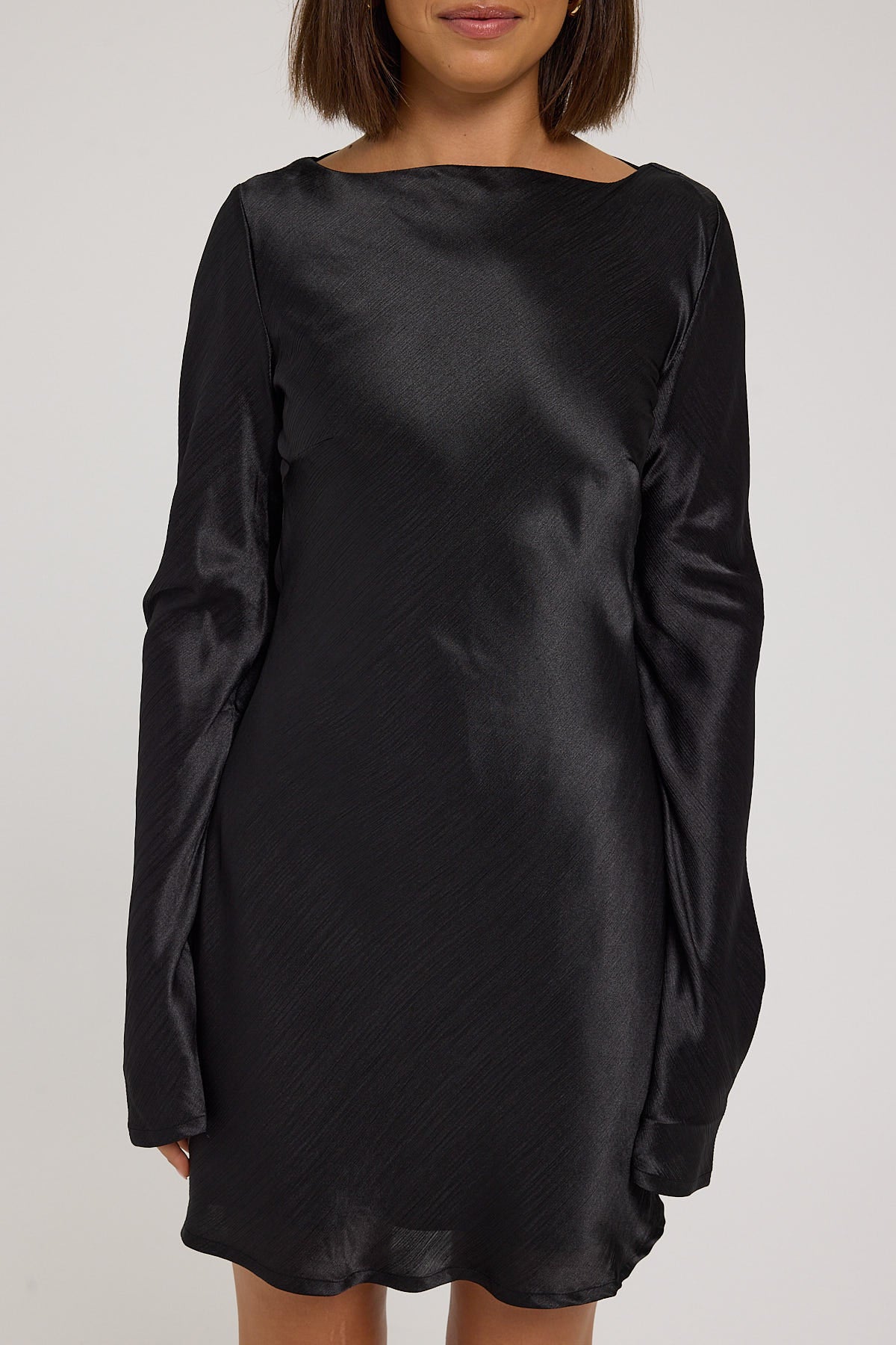 Isla Long Sleeve Cowl Mini Dress Black