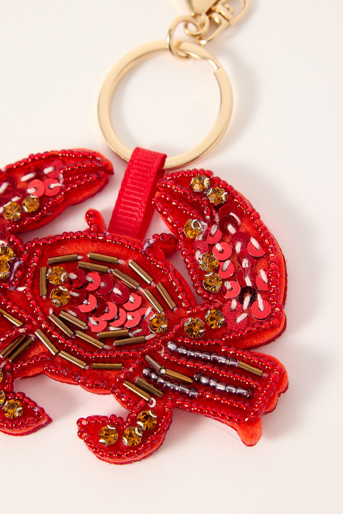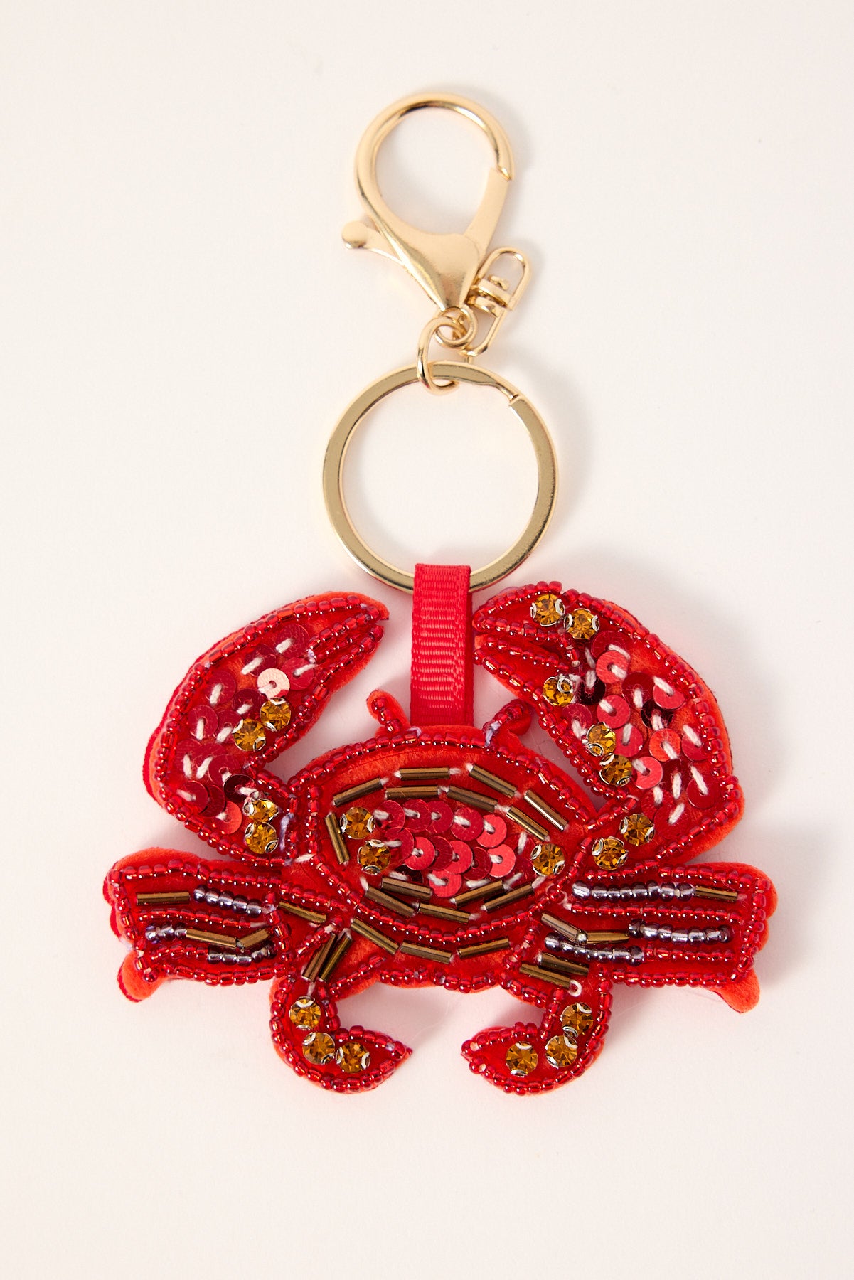 Sequin Crab Keyring Red