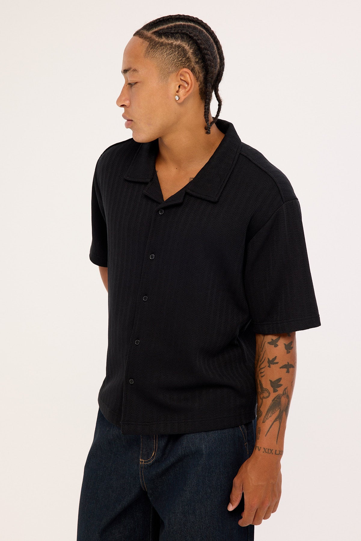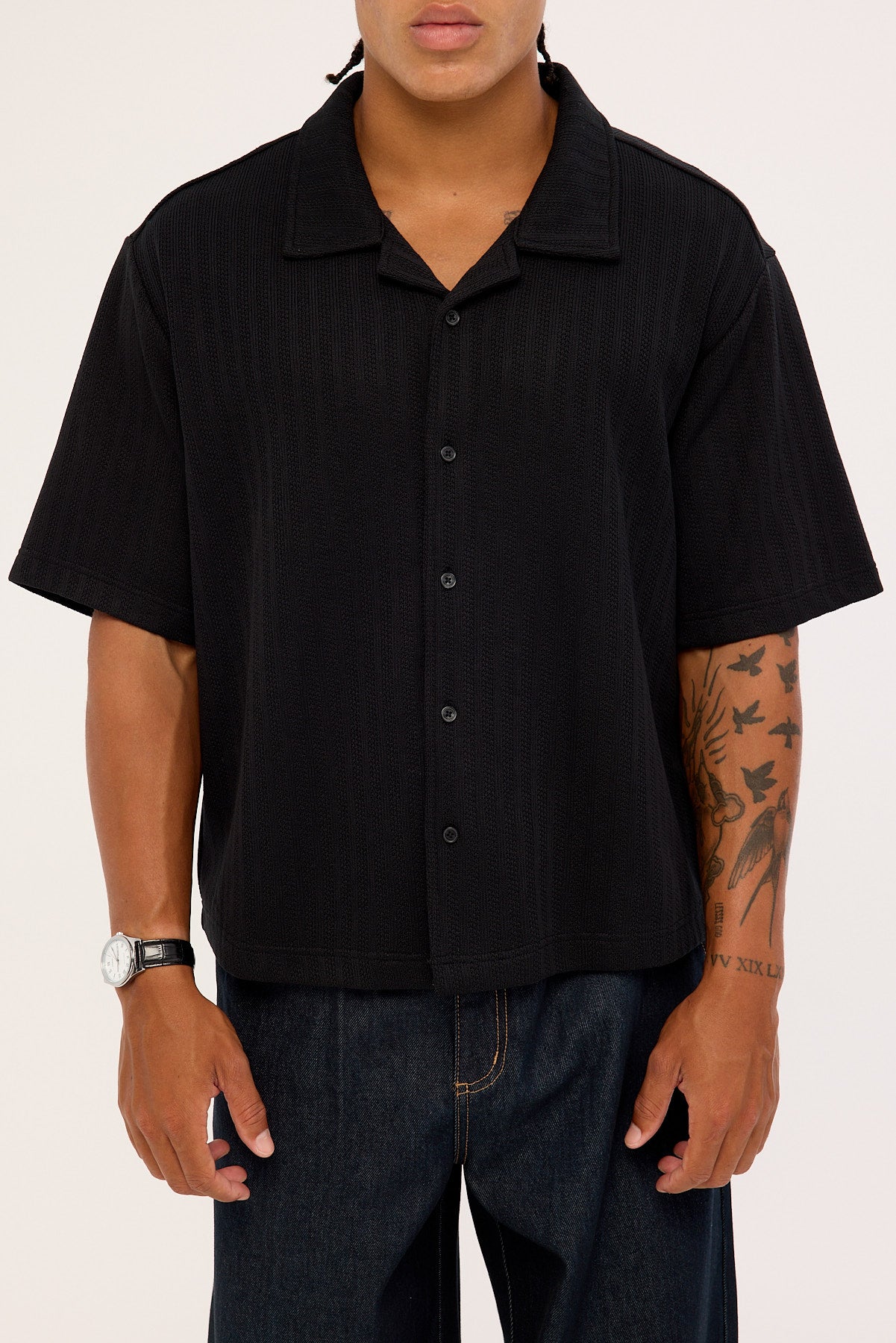 Artie Boxy Cropped Resort Shirt Black