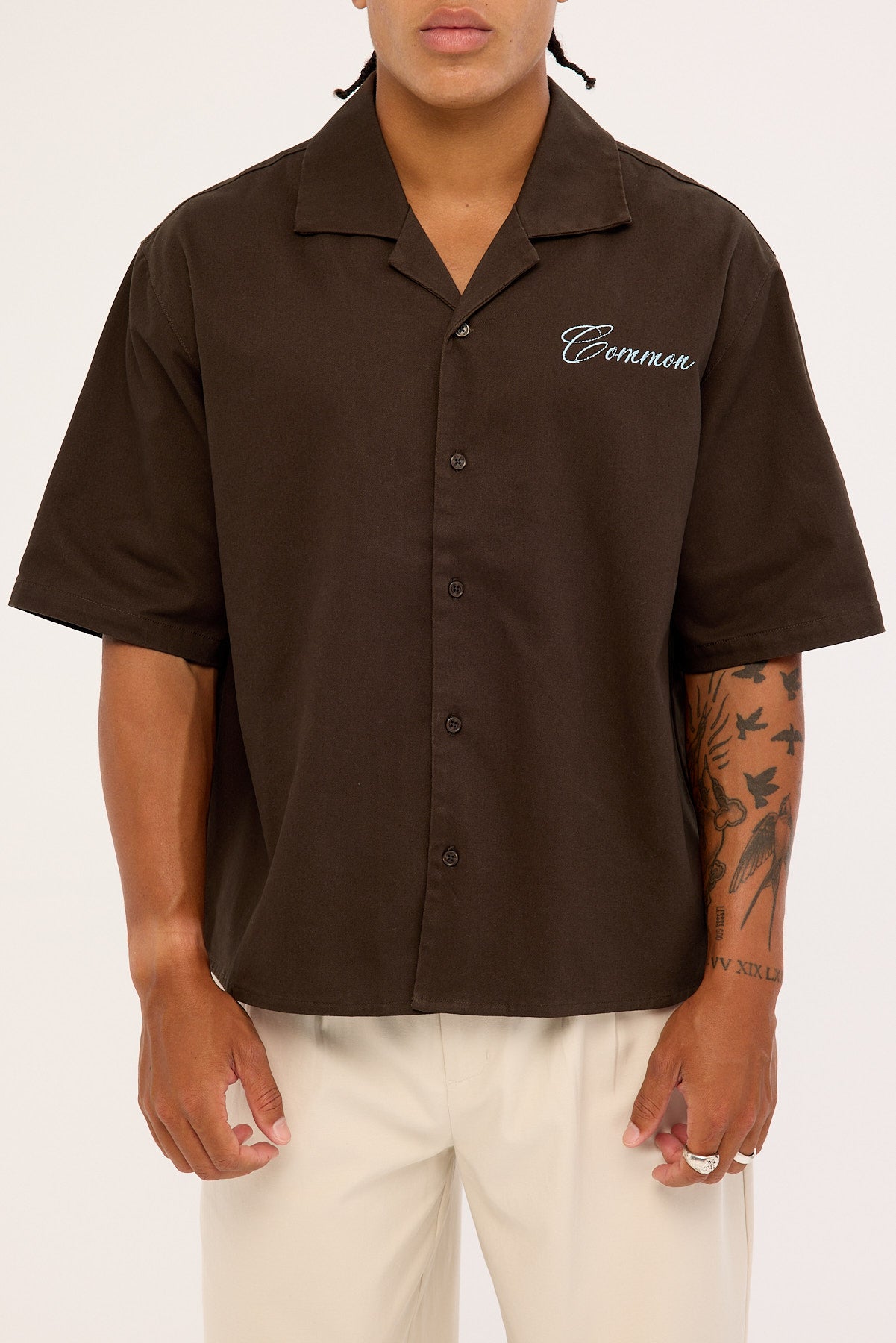 Tropic Shores Boxy Cropped Resort Shirt Coffee Brown