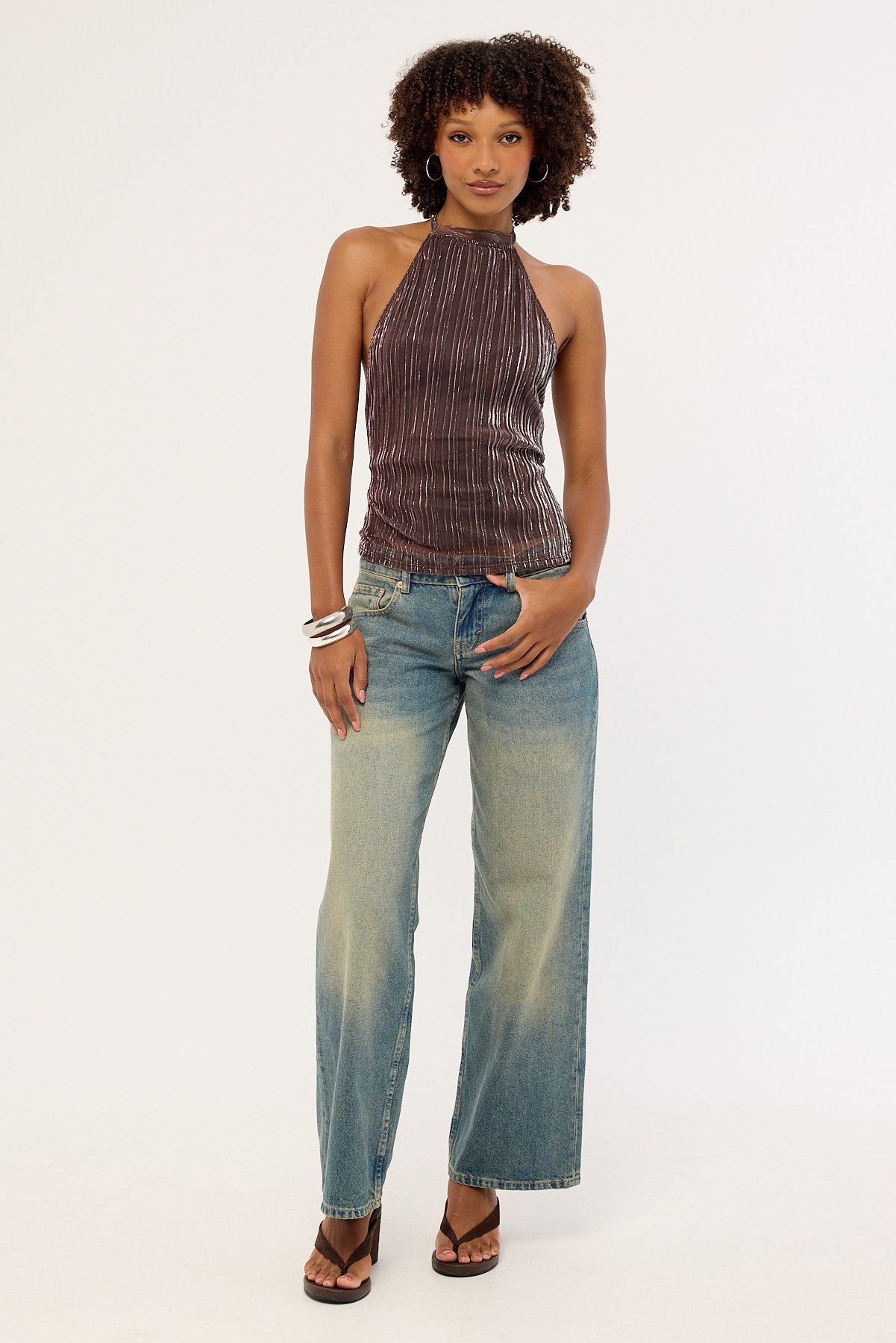 Brienne Top Brown Shimmer Sheer Plisse