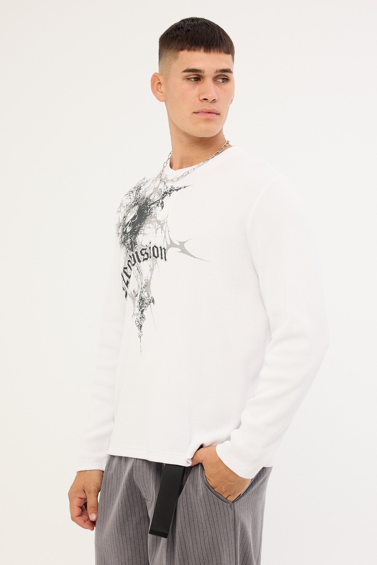 Voidcore Henley Long Sleeve Tee White