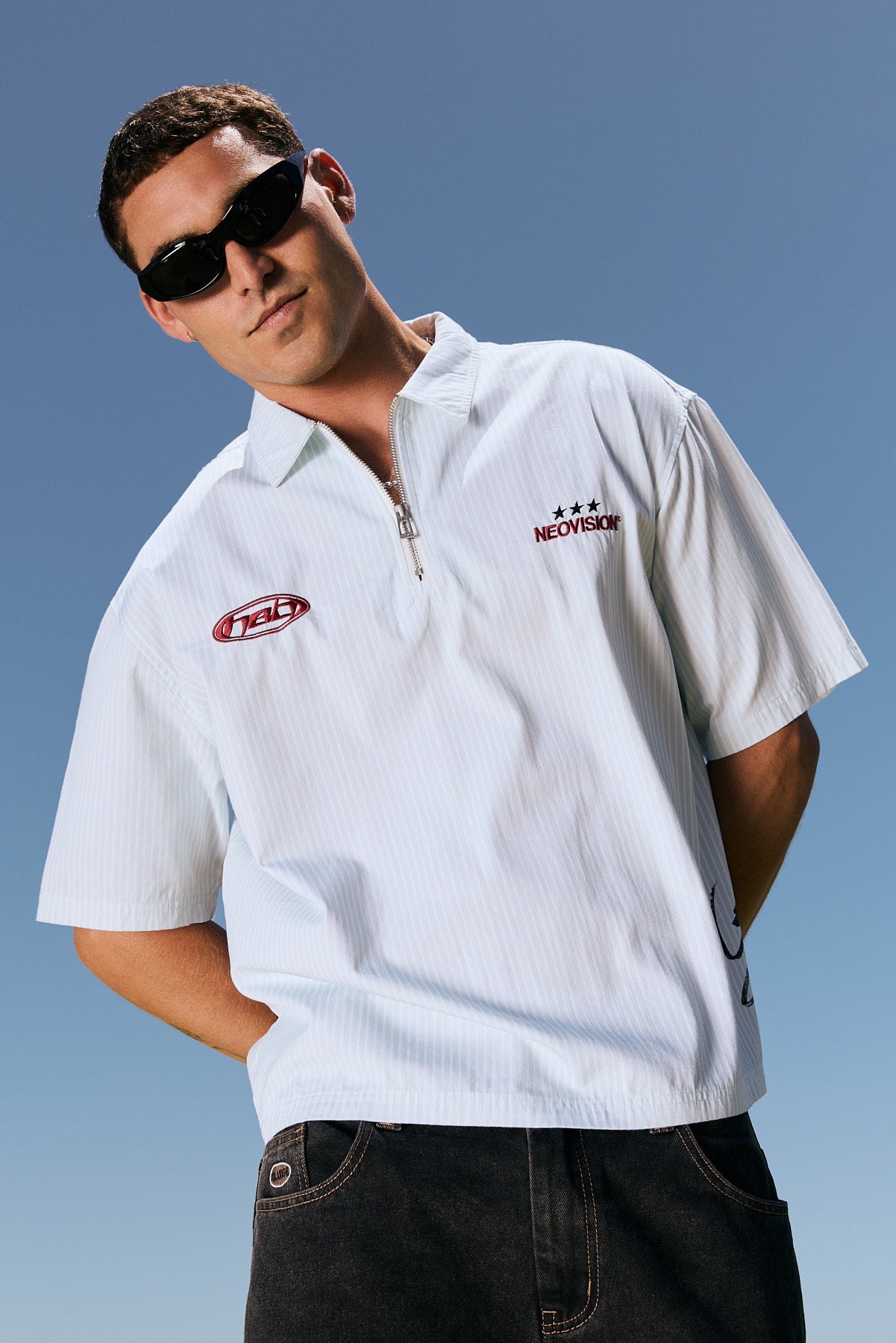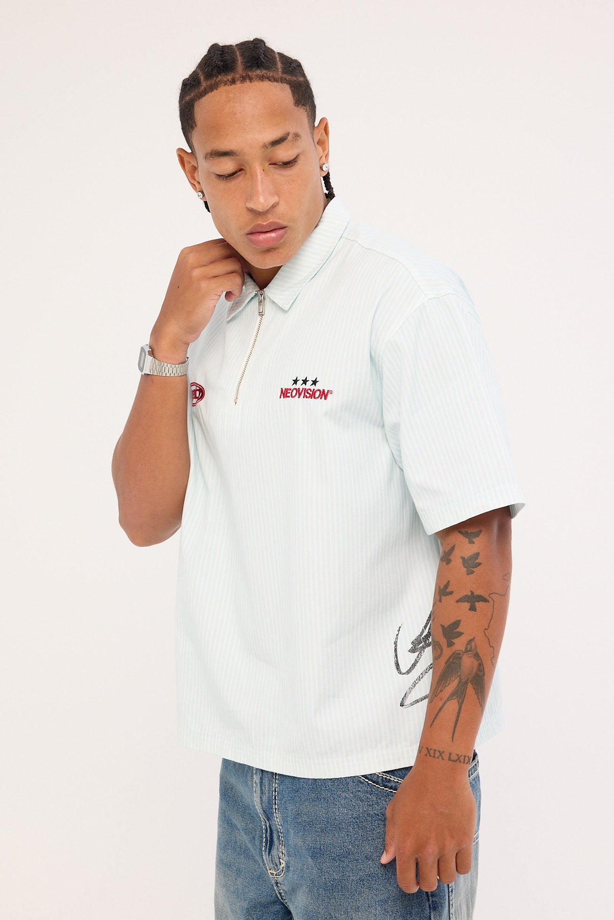 Graphite Cropped Quarter Zip Polo Blue/White Stripe