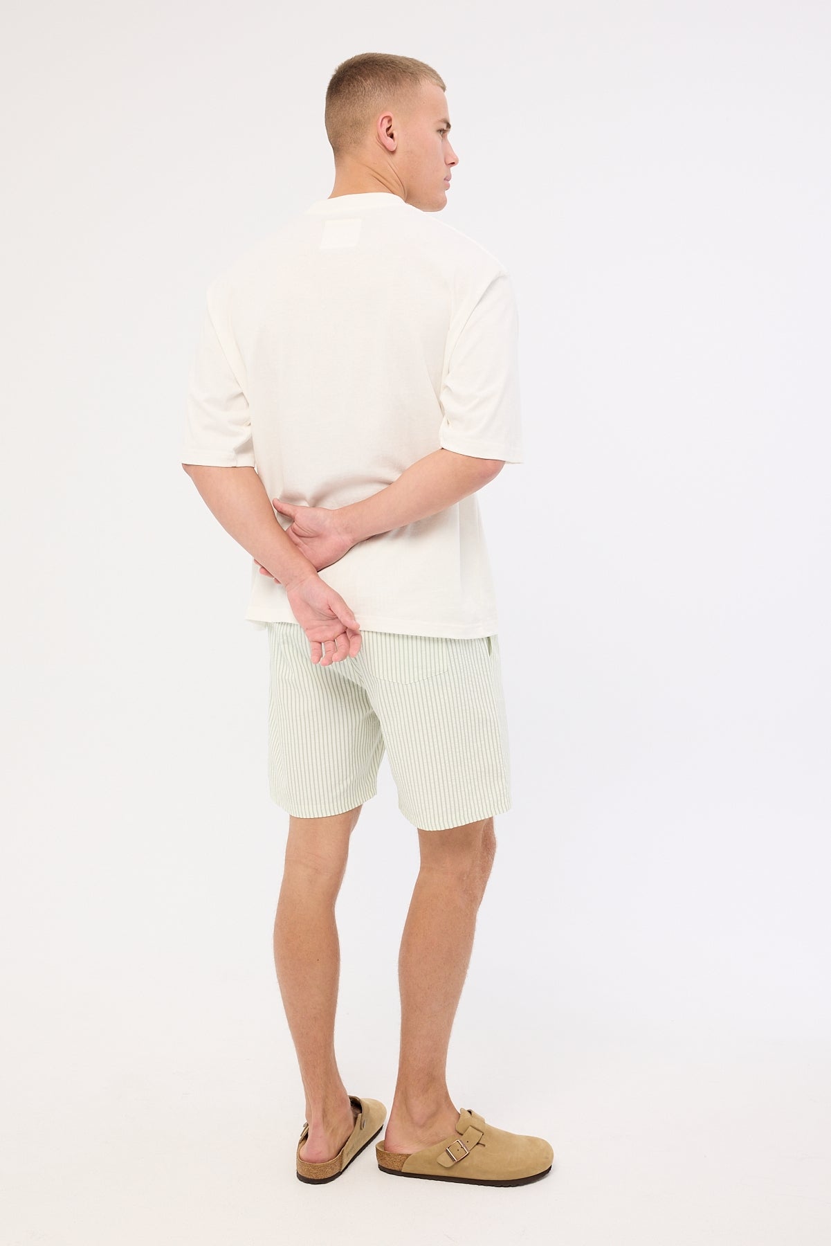 Yorick Elastic Waist Short Sage Stripe