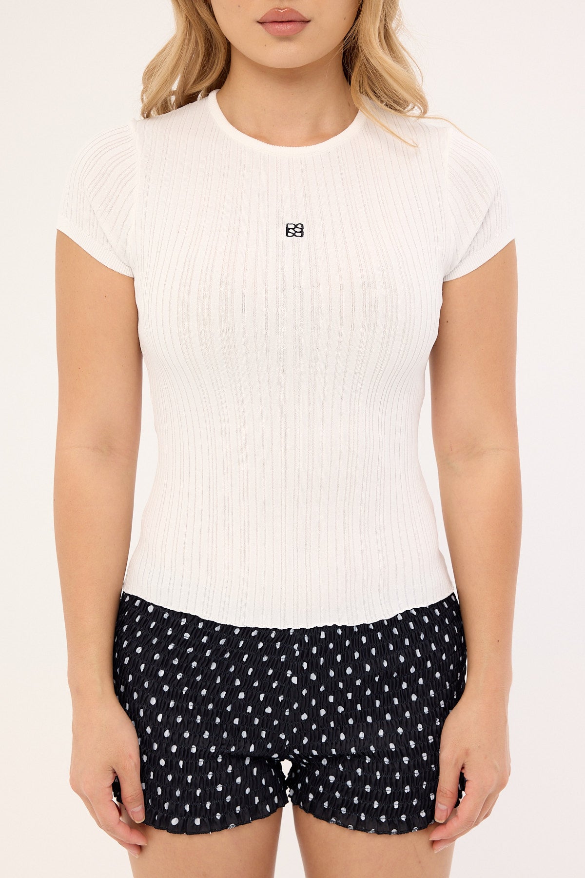 Knitted Cap Sleeve T-Shirt White