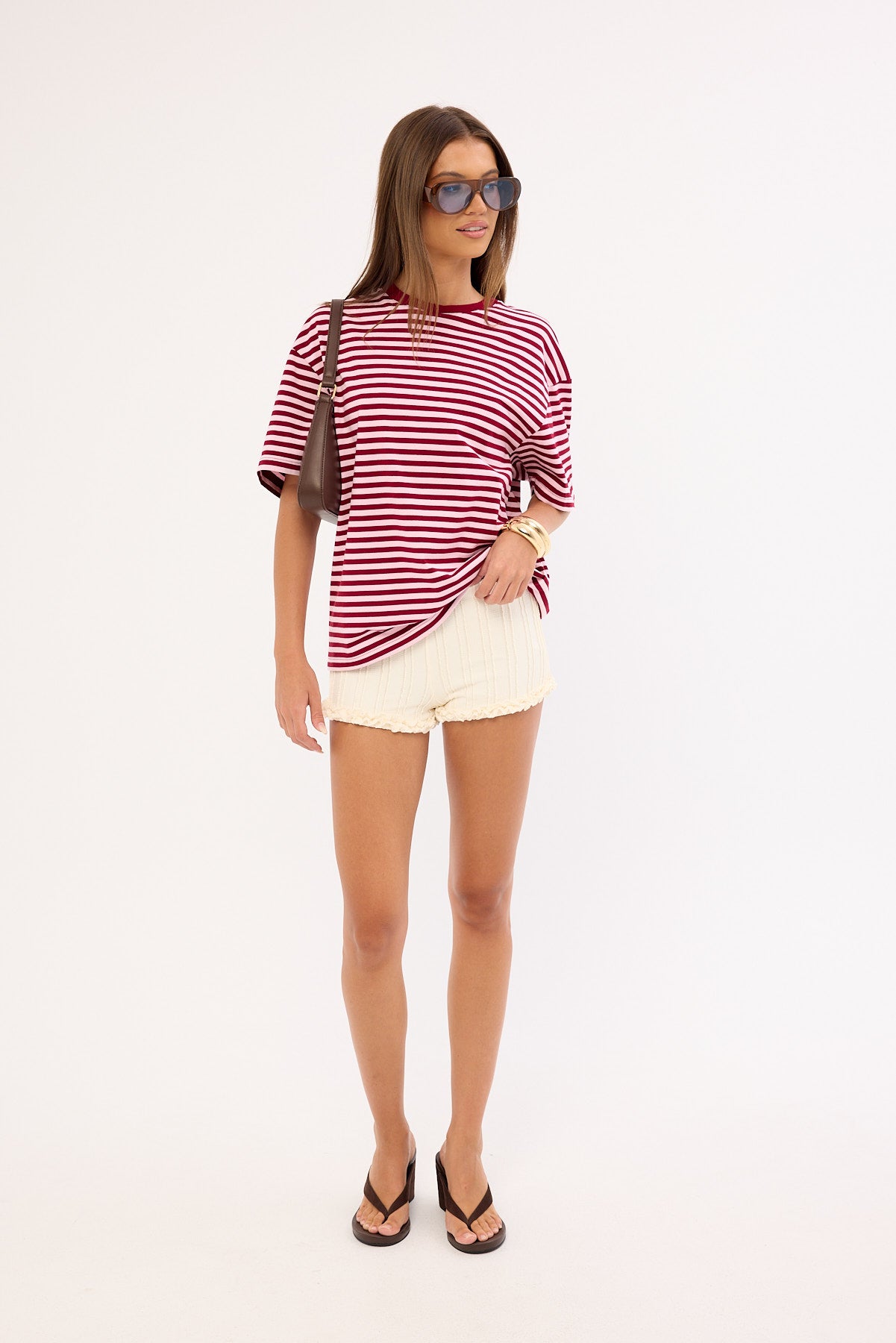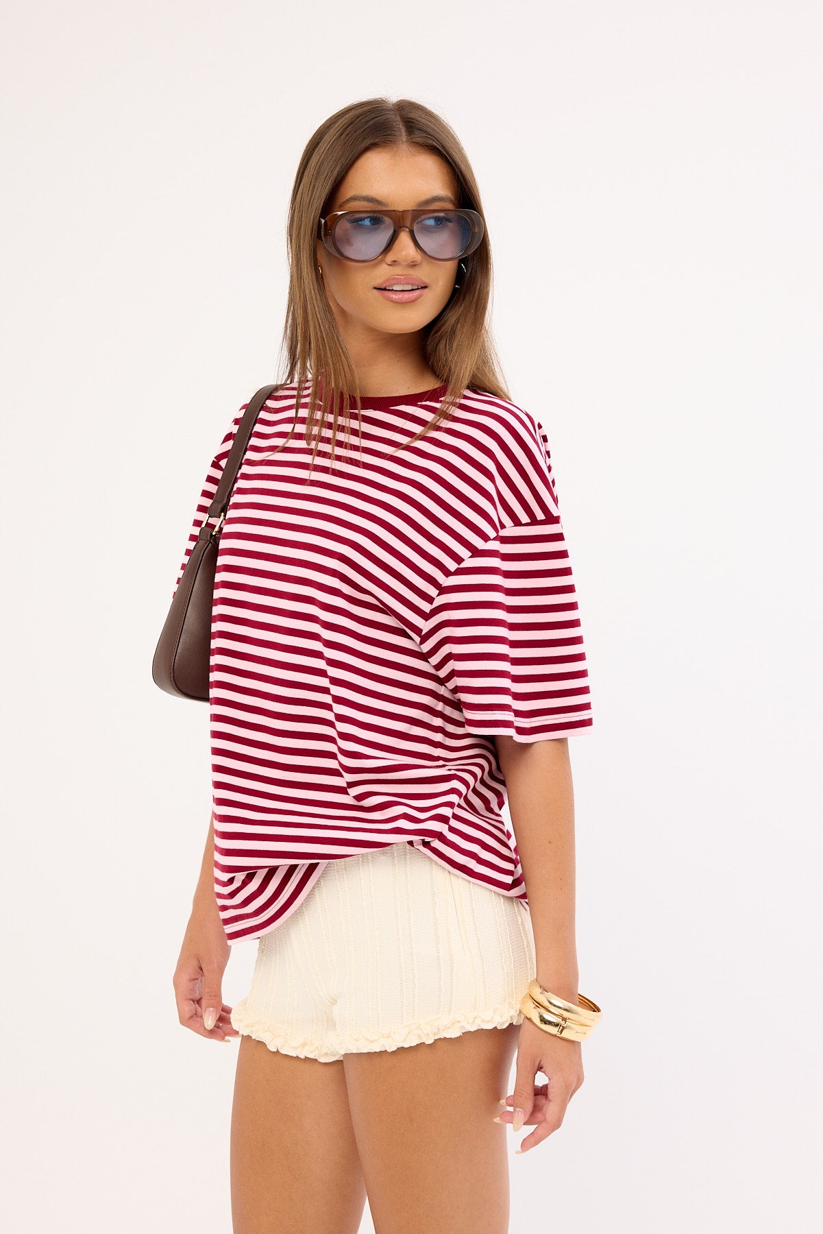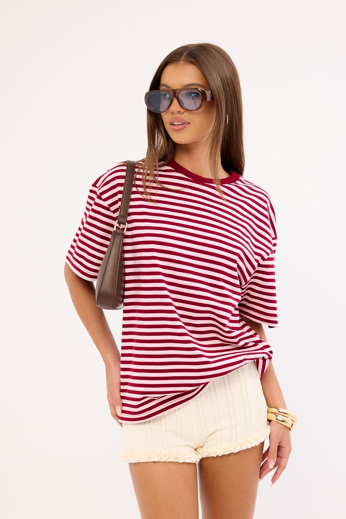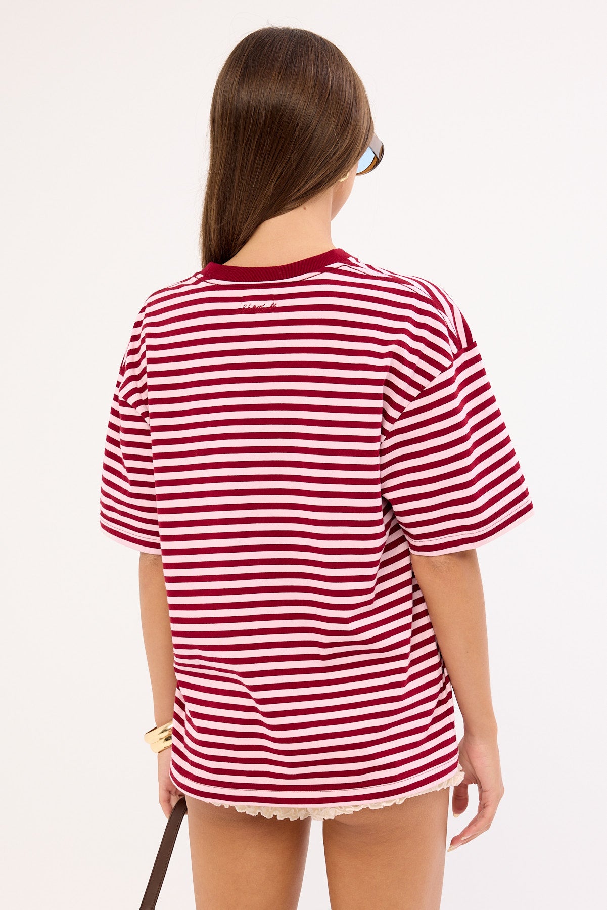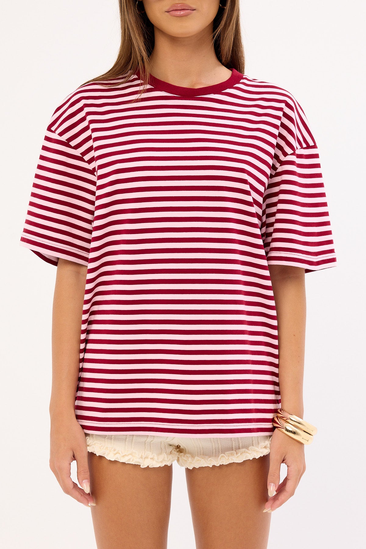 Margot Stripe Relaxed T-shirt Pink and Burgundy