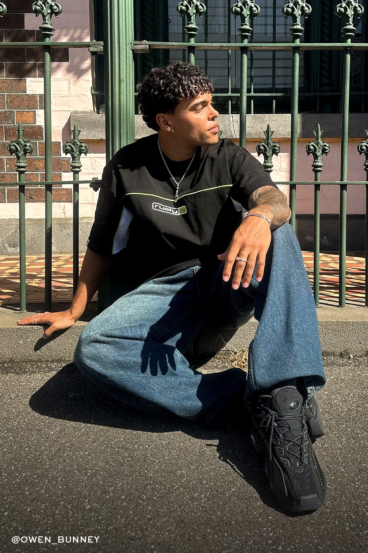 • The model is wearing size M. He is 185 cm tall with a 91 cm chest and 71 cm waist