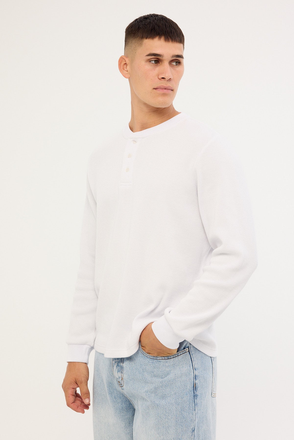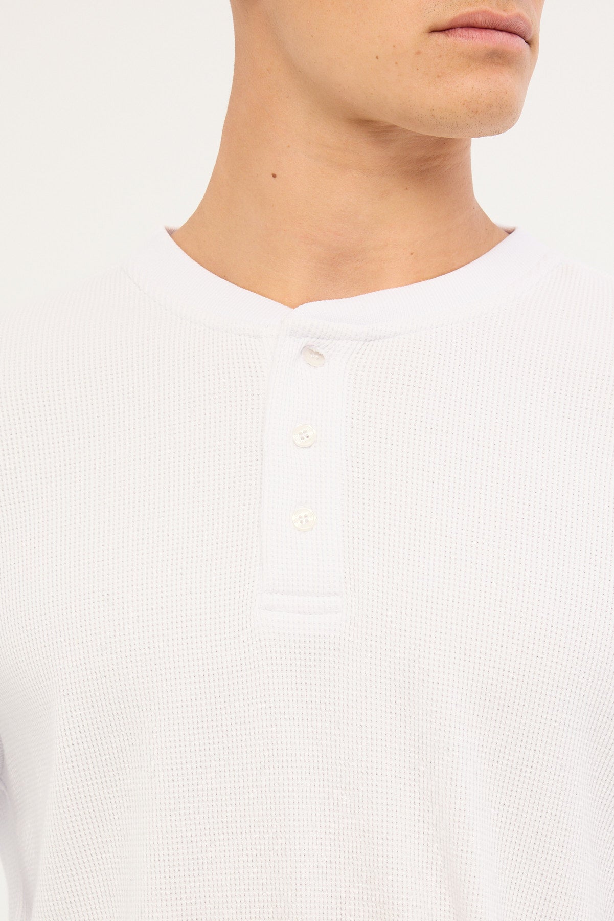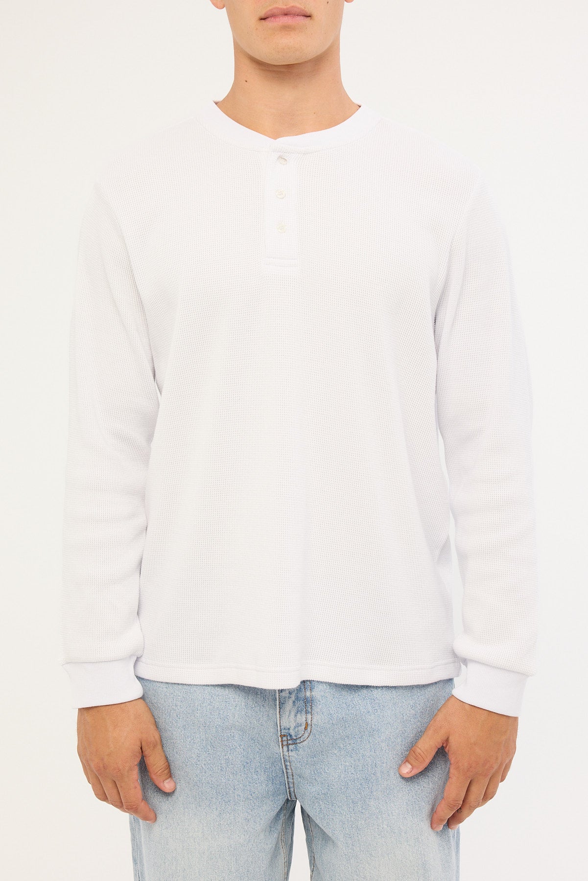Raymond Waffle Long Sleeve Henley Tee White