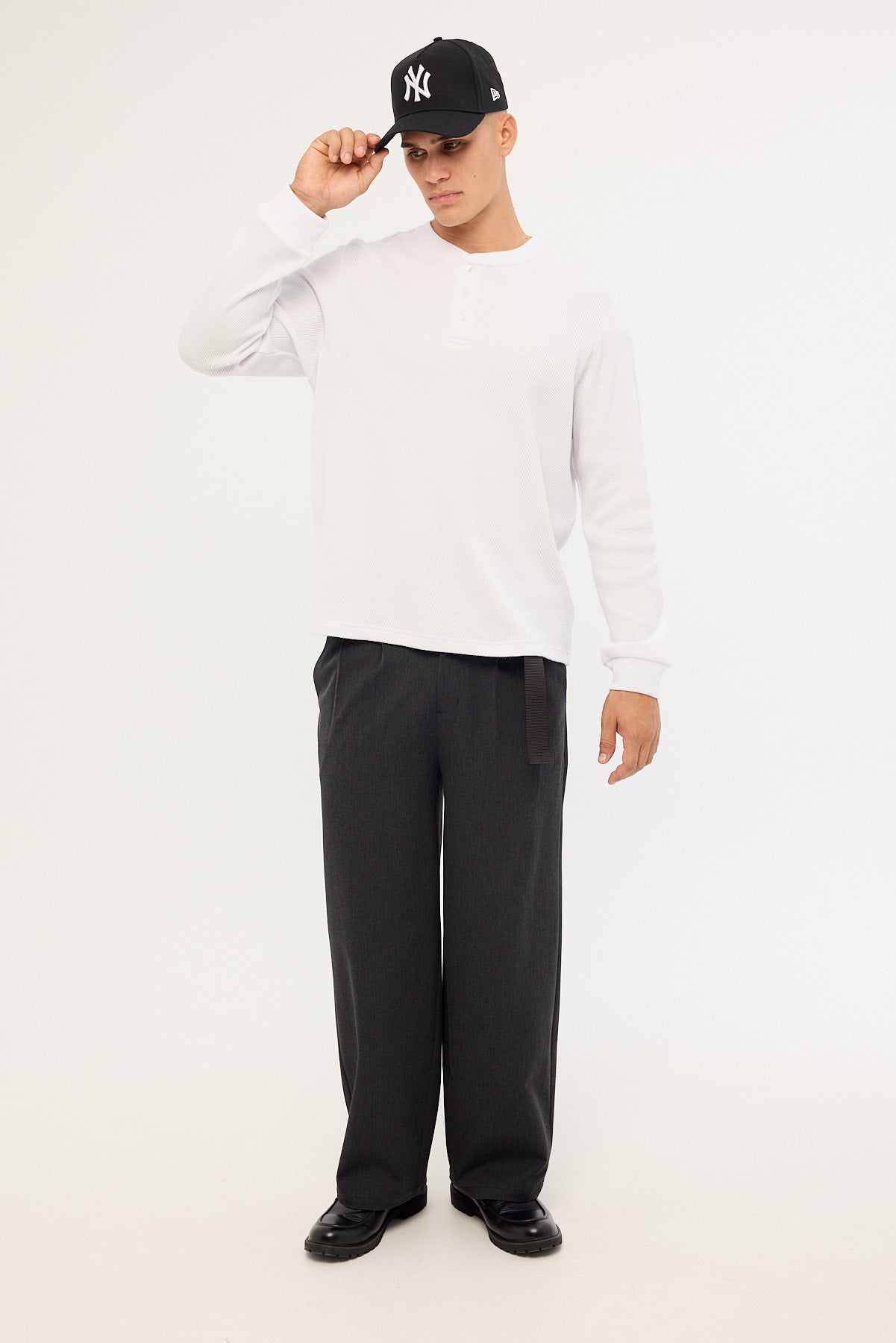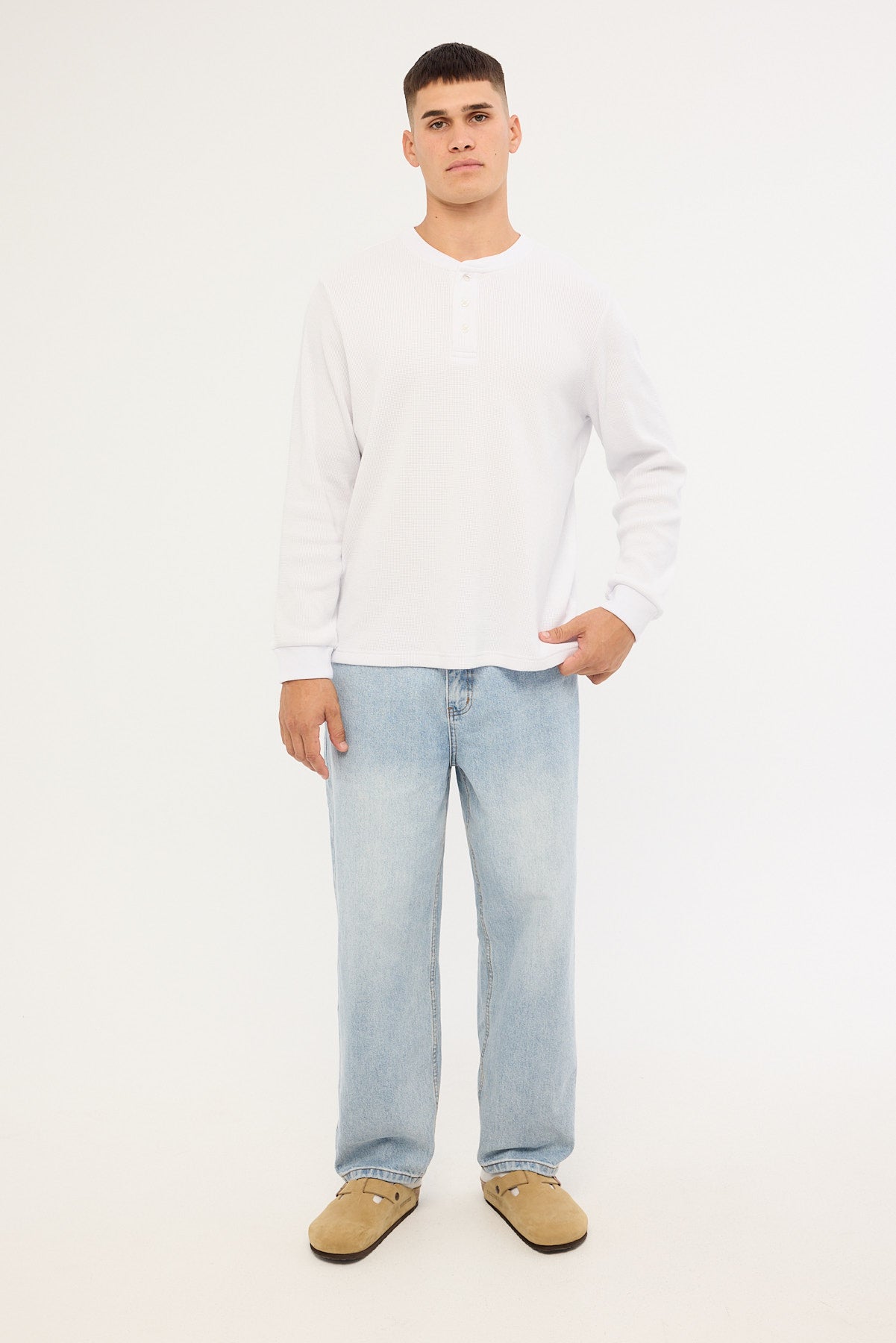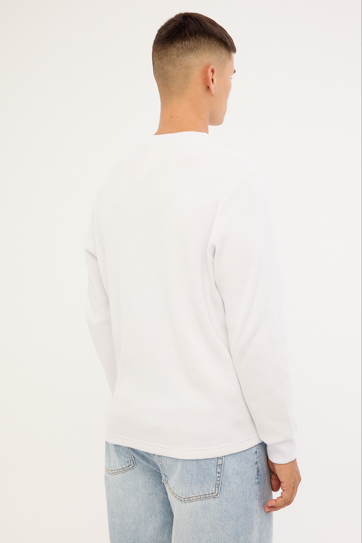 Raymond Waffle Long Sleeve Henley Tee White