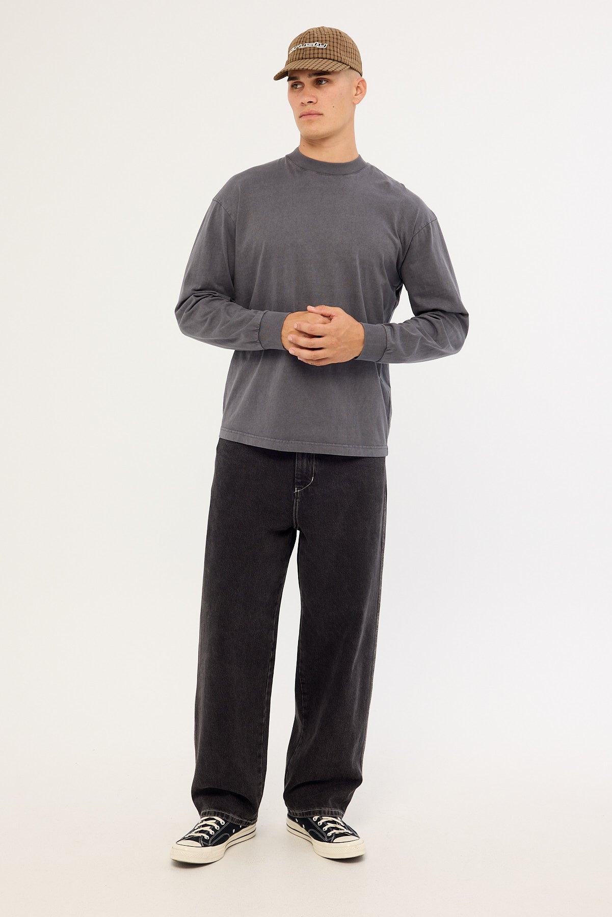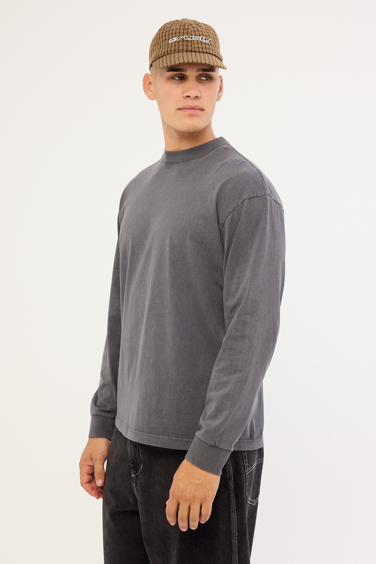 Organic Boxy Long Sleeve Tee Washed Black