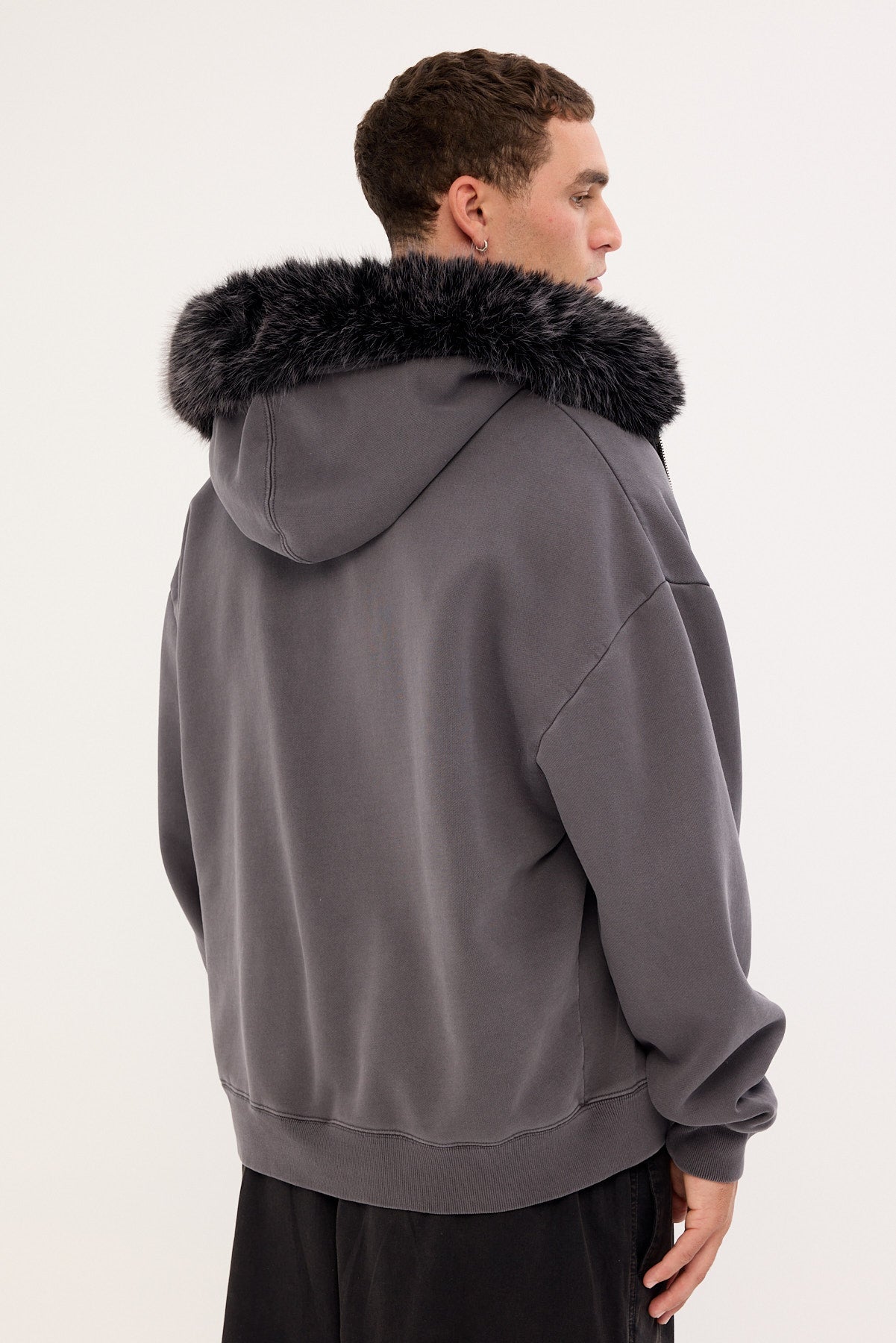 • Drop shoulder fit with detatchable fur on hood