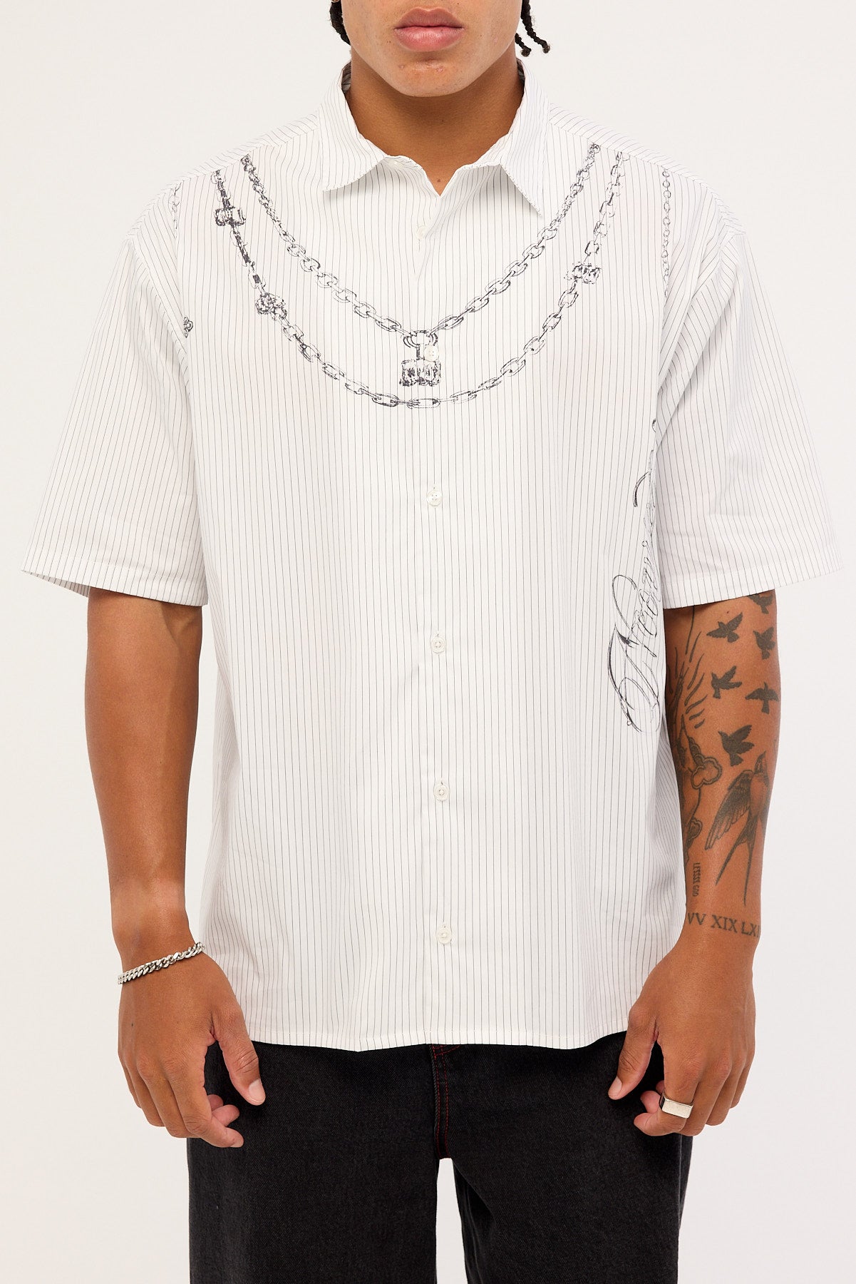 Shackle Oversize Shirt White/Black Stripe