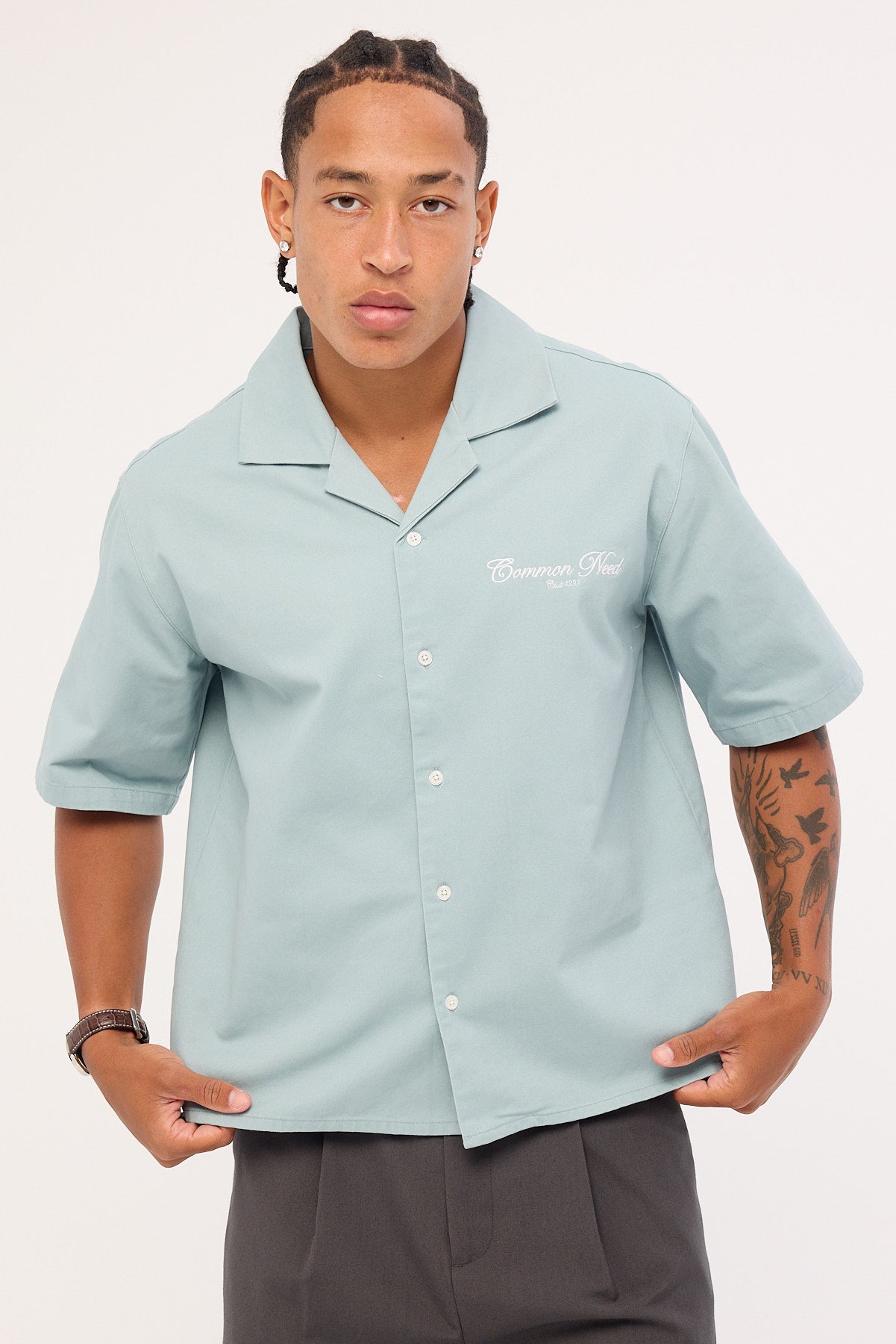 Diplomatic Boxy Cropped Resort Shirt Washed Powder Blue