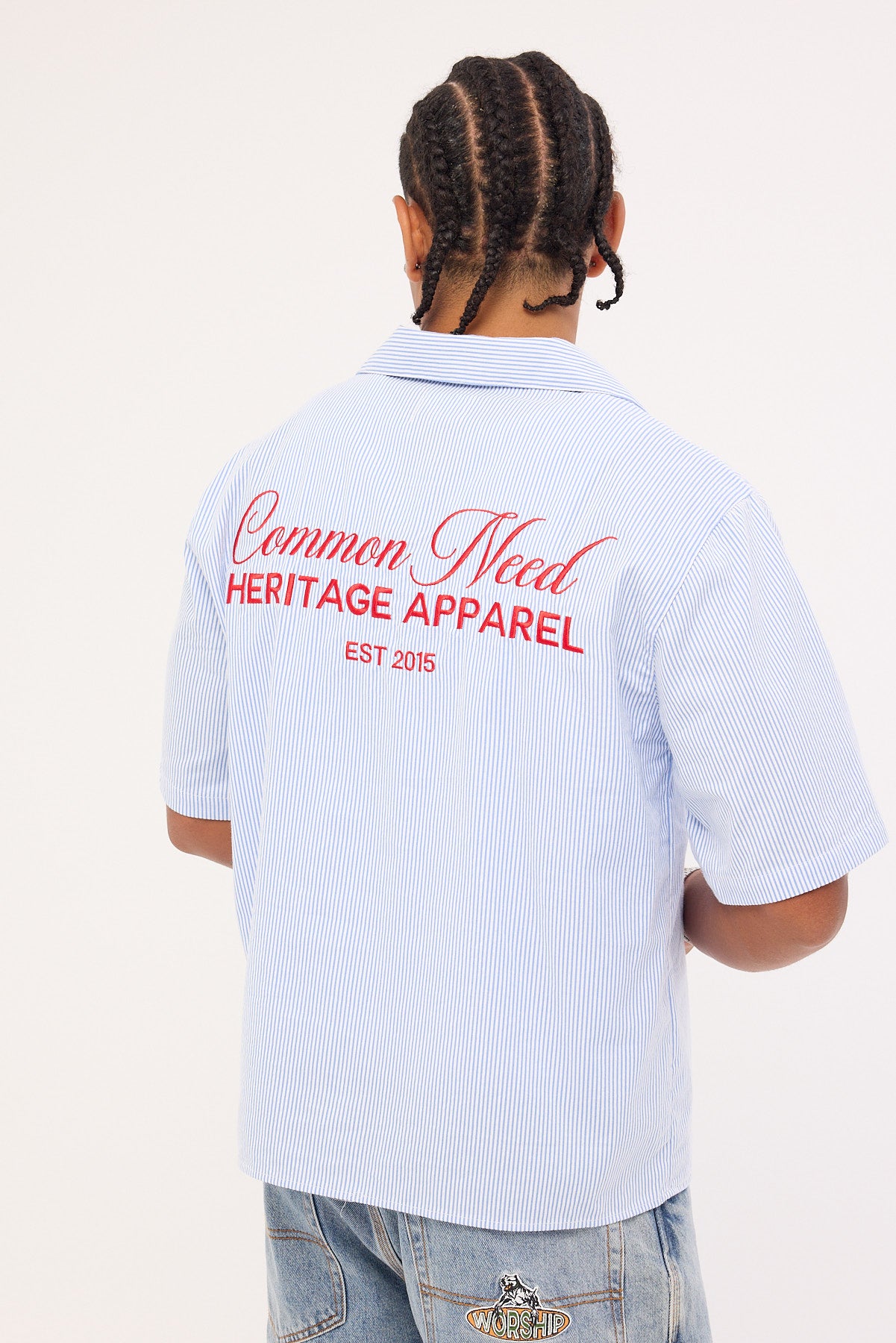 Royalty Boxy Cropped Resort Shirt Blue/White Stripe
