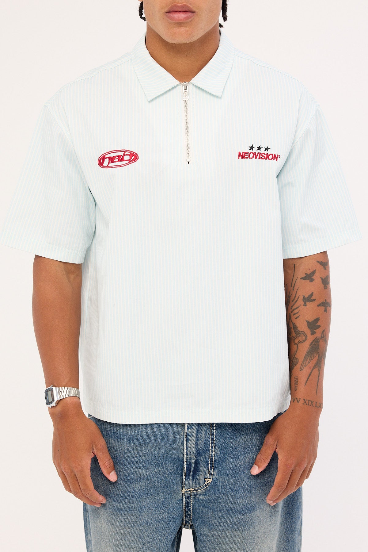 Graphite Cropped Quarter Zip Polo Blue/White Stripe