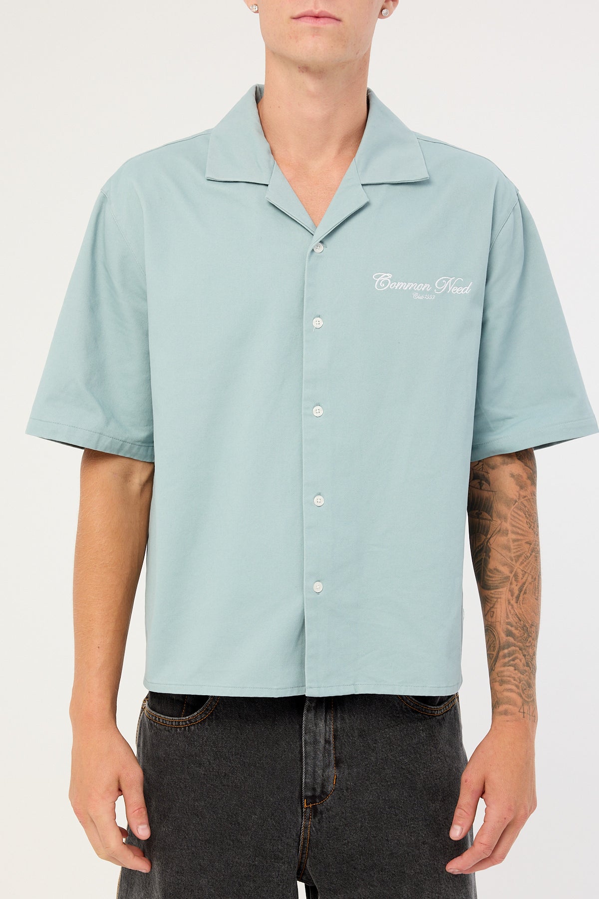 Diplomatic Boxy Cropped Resort Shirt Washed Powder Blue