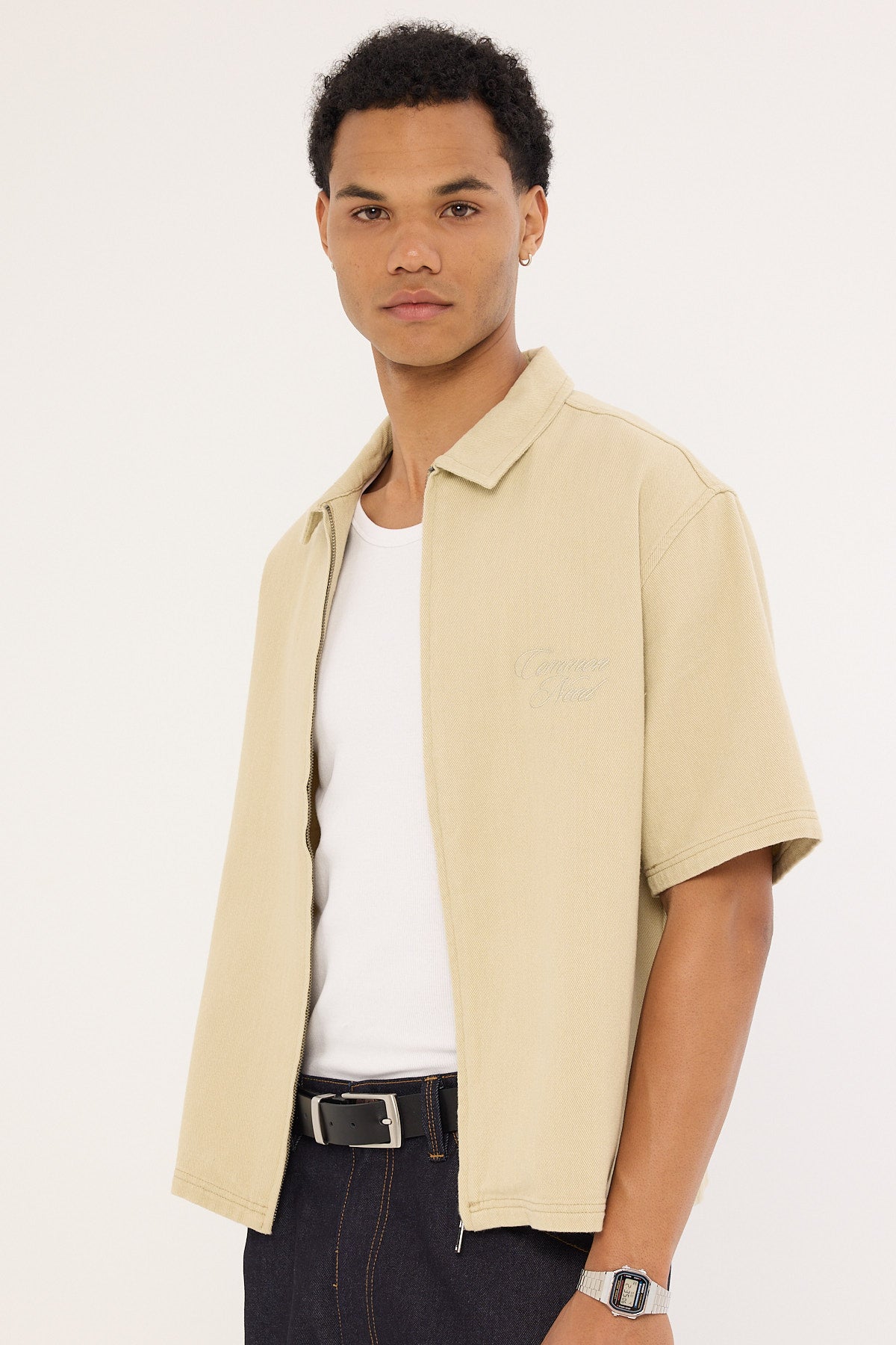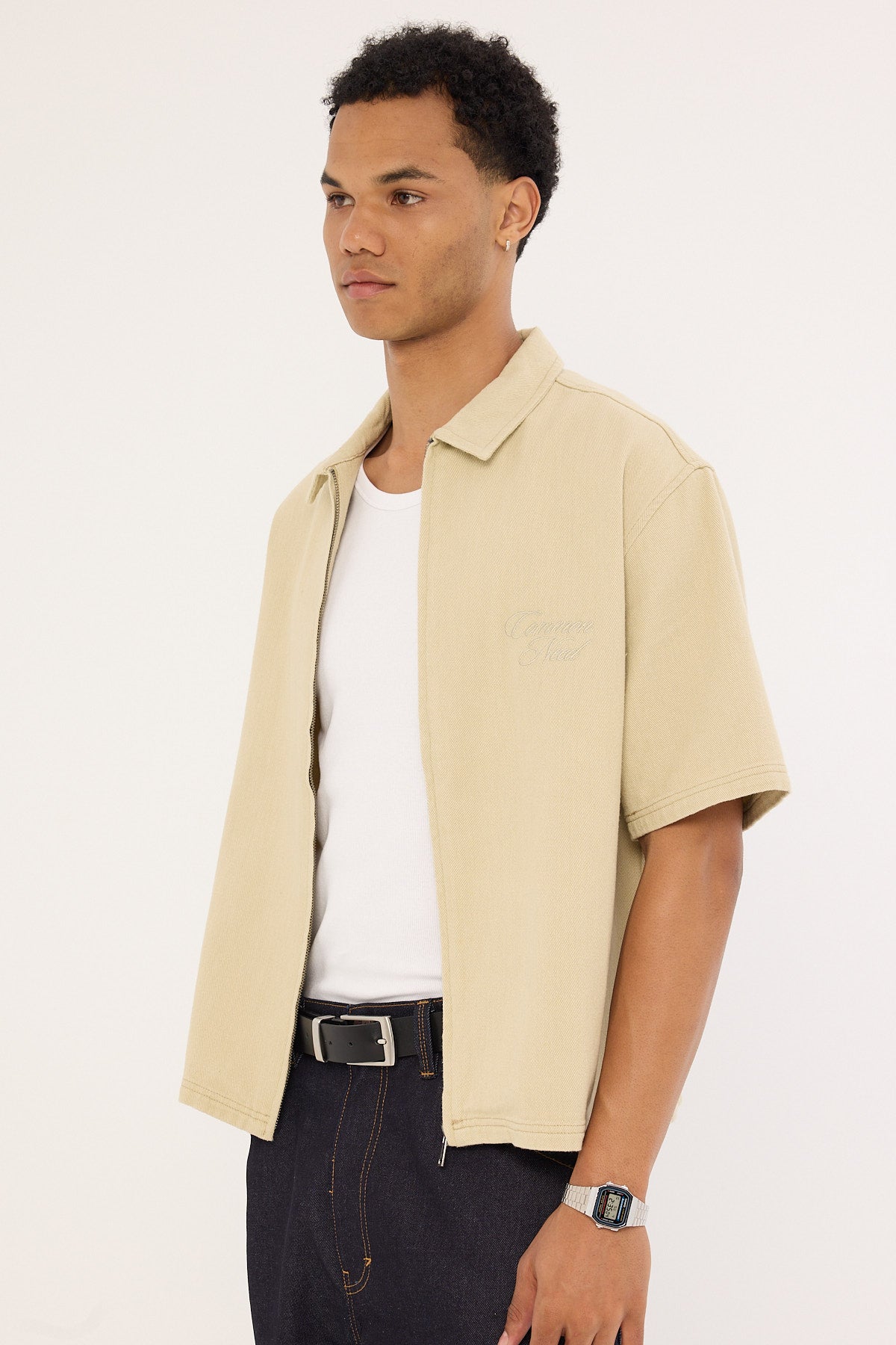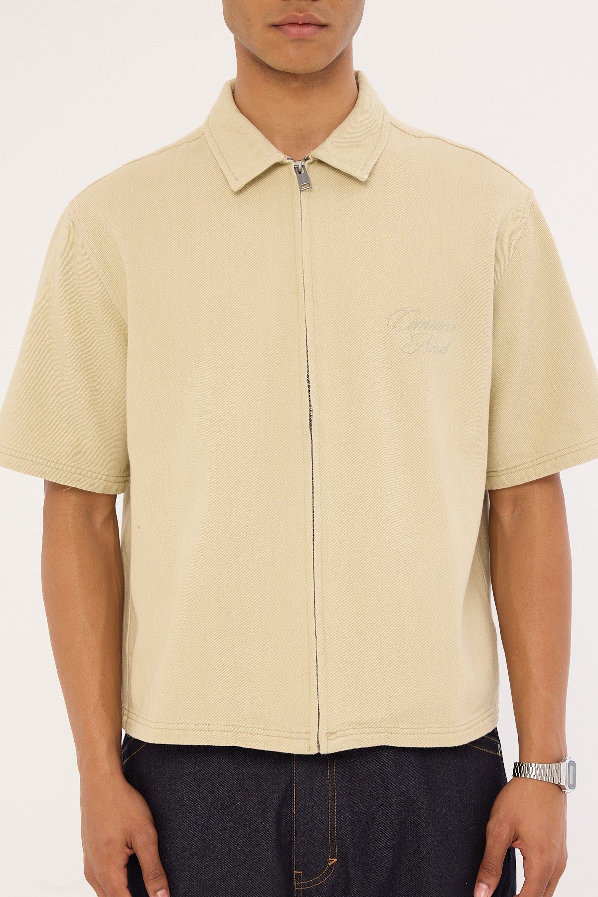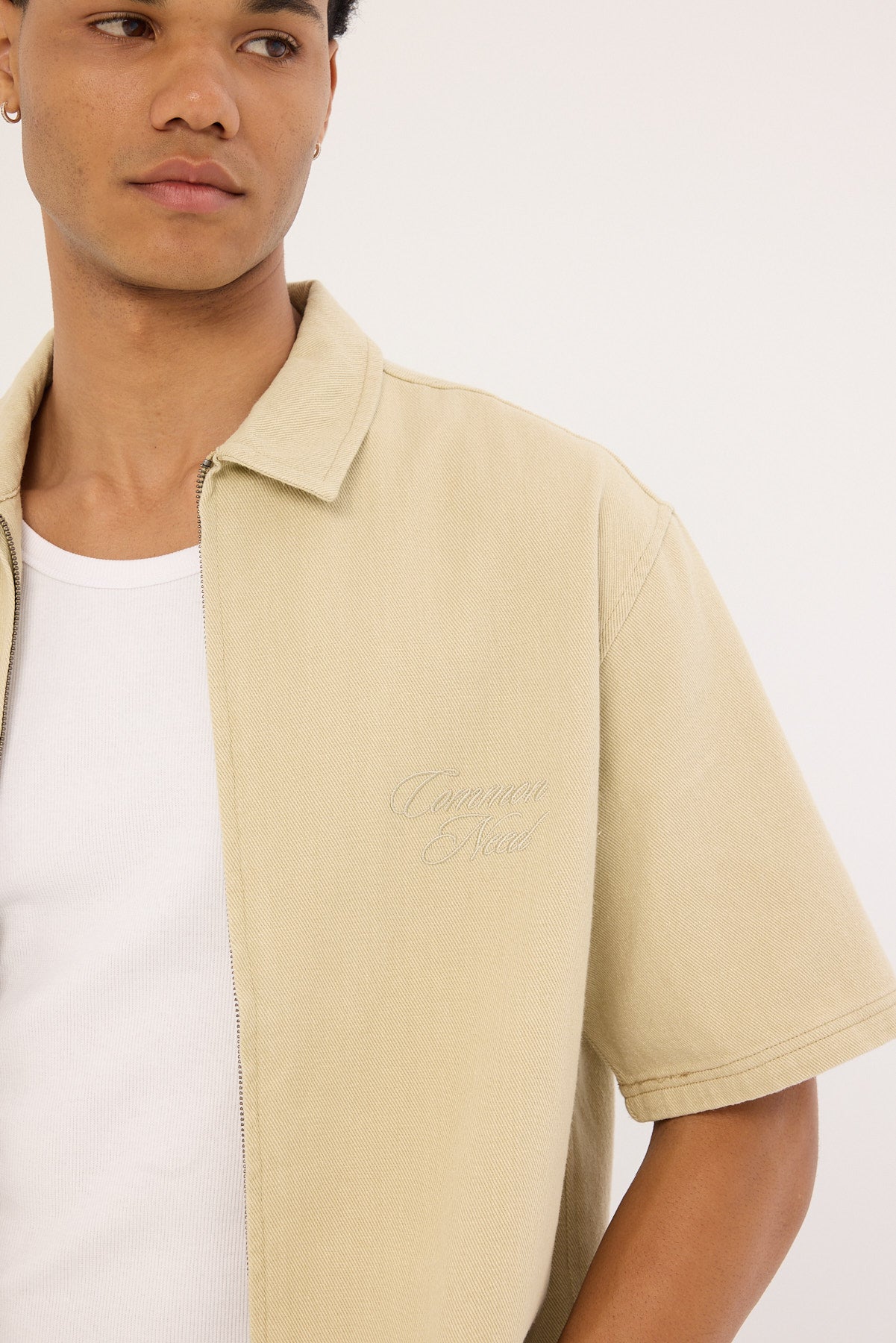 Dustin Zip Boxy Cropped Shirt Biscuit