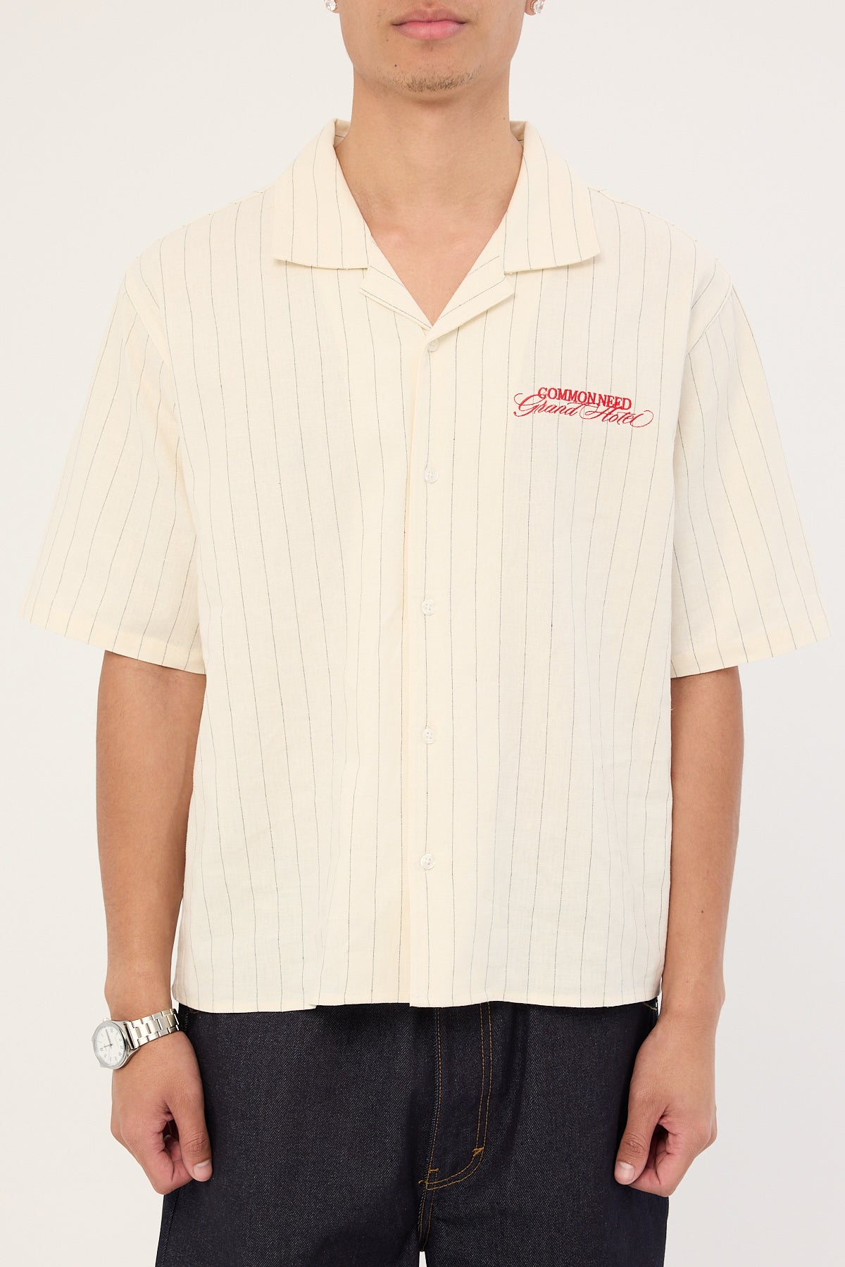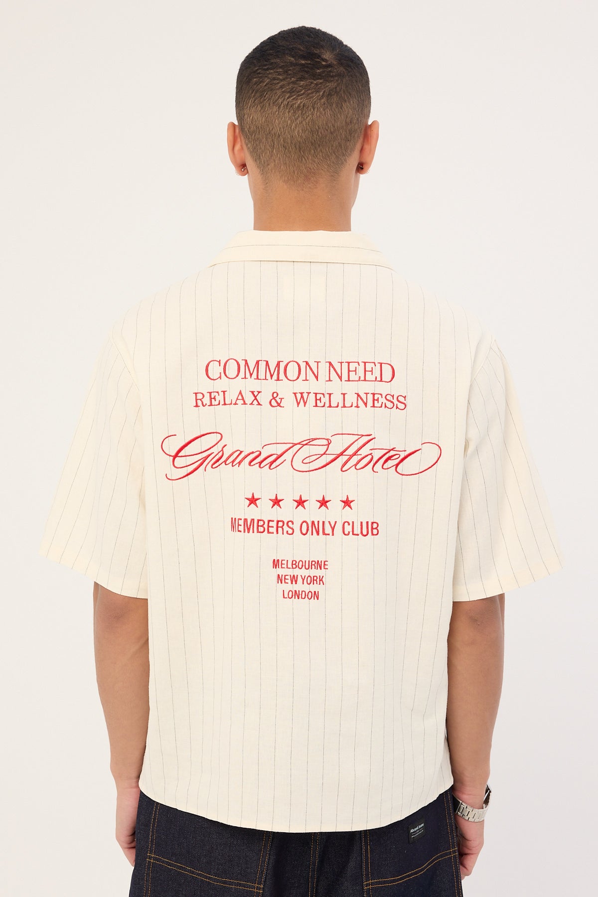 Hotel Boxy Cropped Resort Shirt White Pinstripe