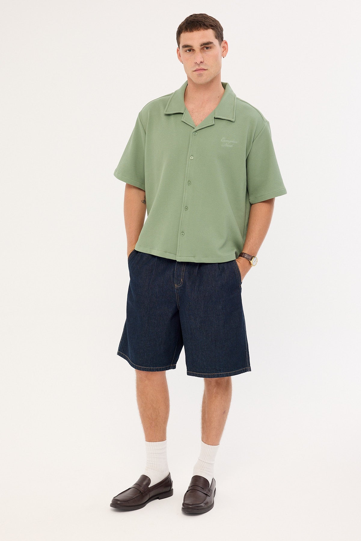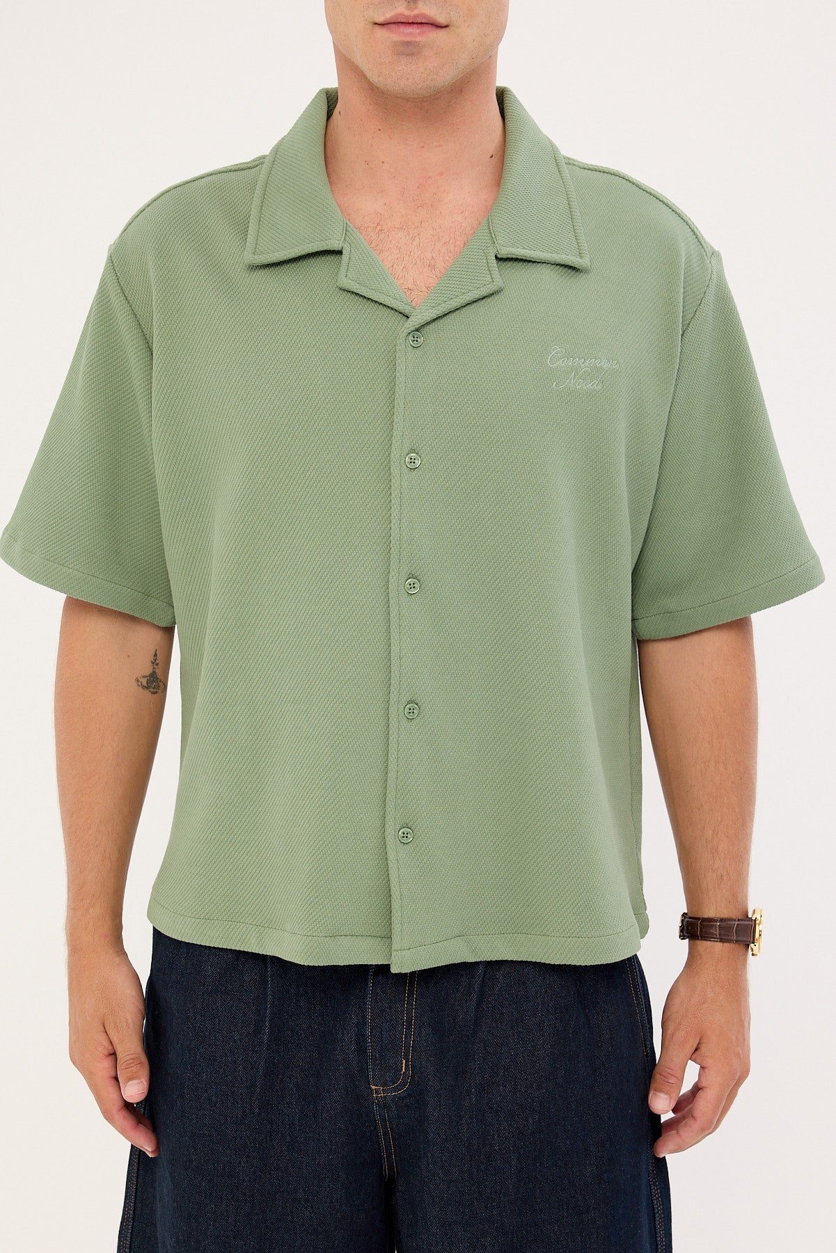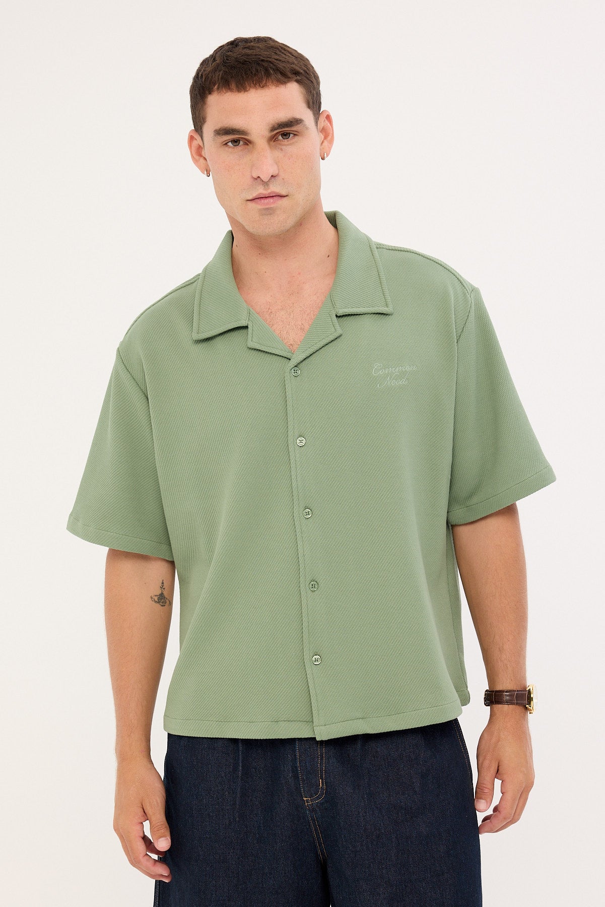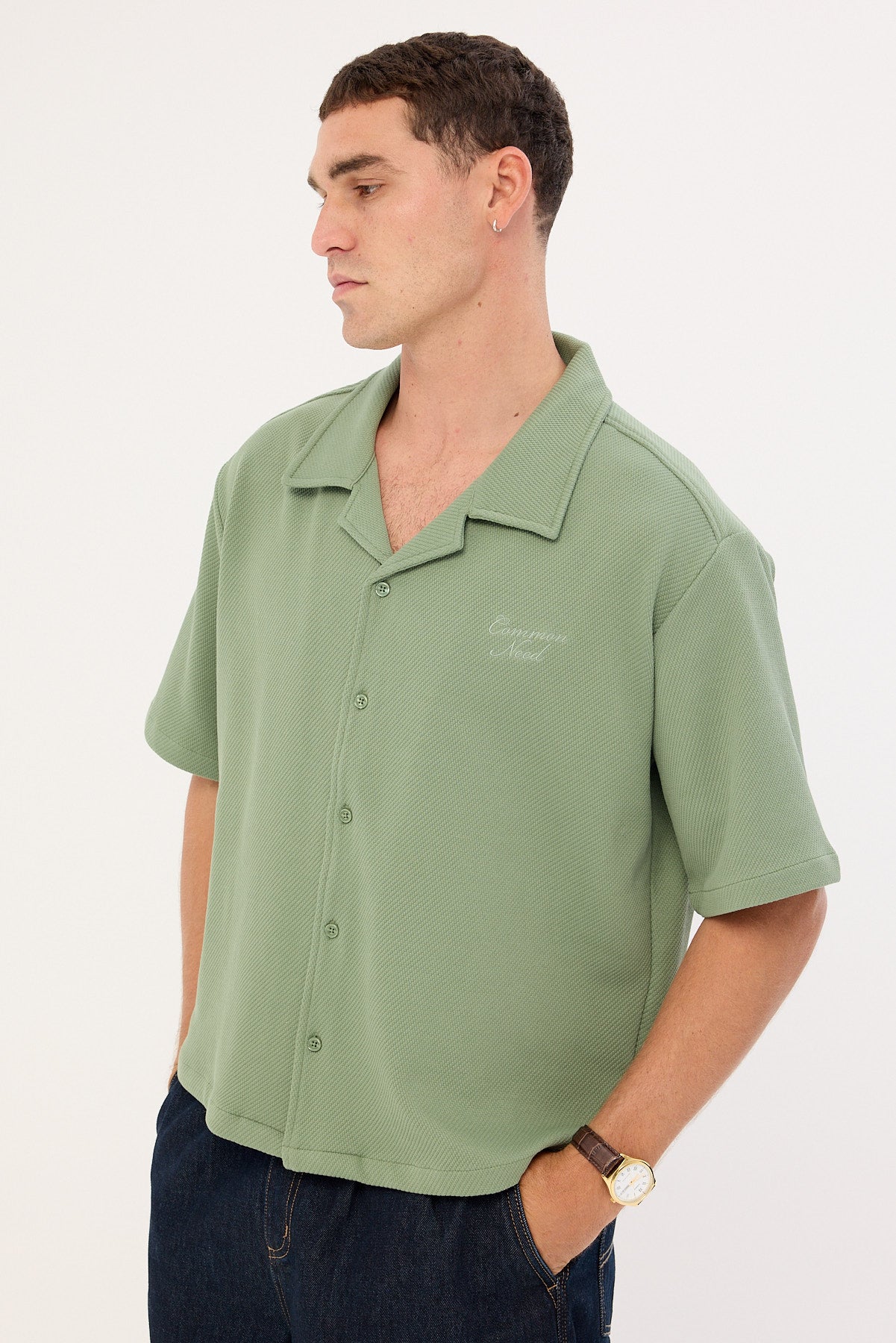 Alaric Boxy Cropped Resort Shirt Sage
