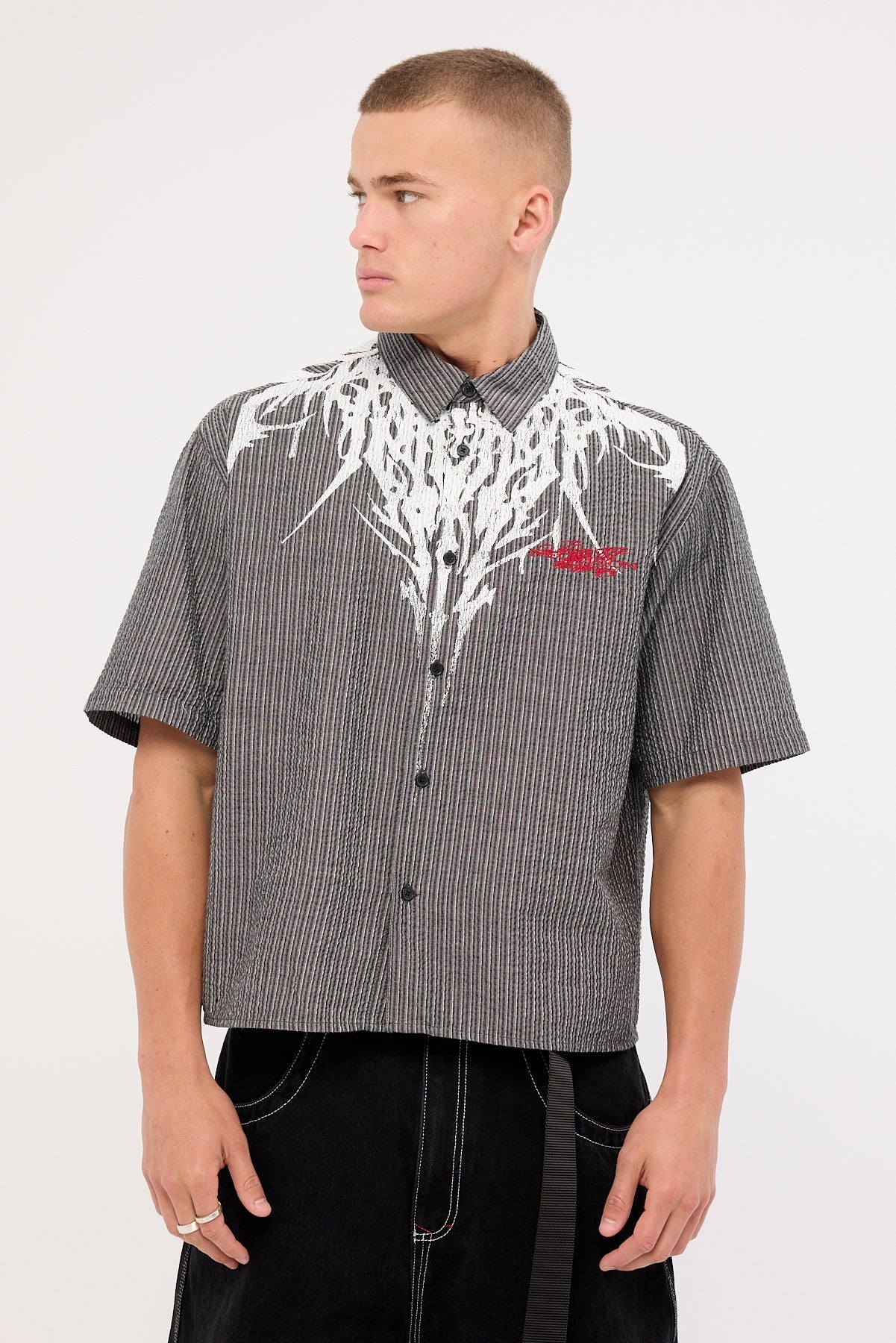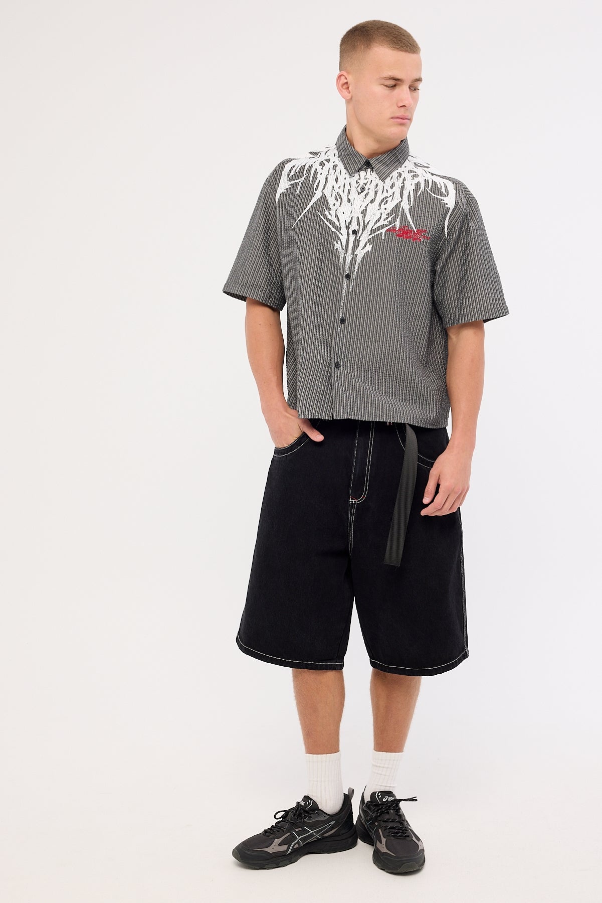 Ironfang Oversize Cropped Shirt Black/White Stripe