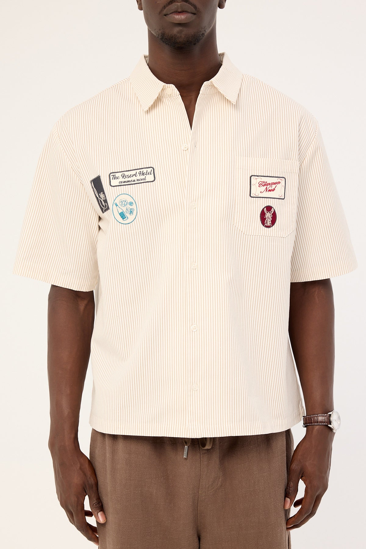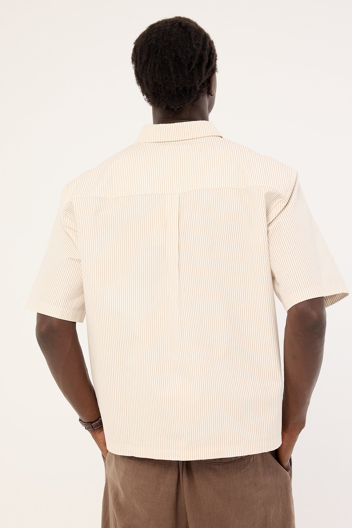 Getaway Boxy Cropped Shirt White/Tan Stripe