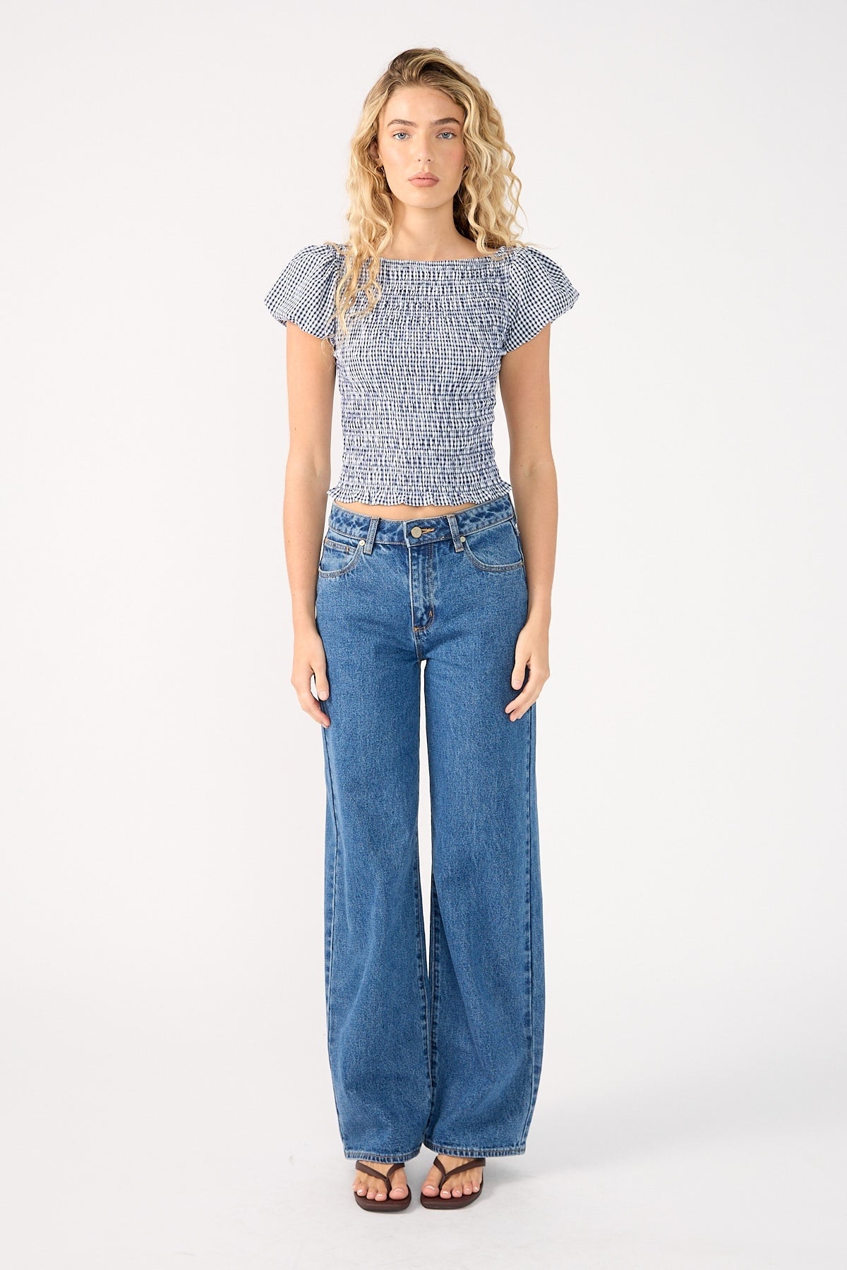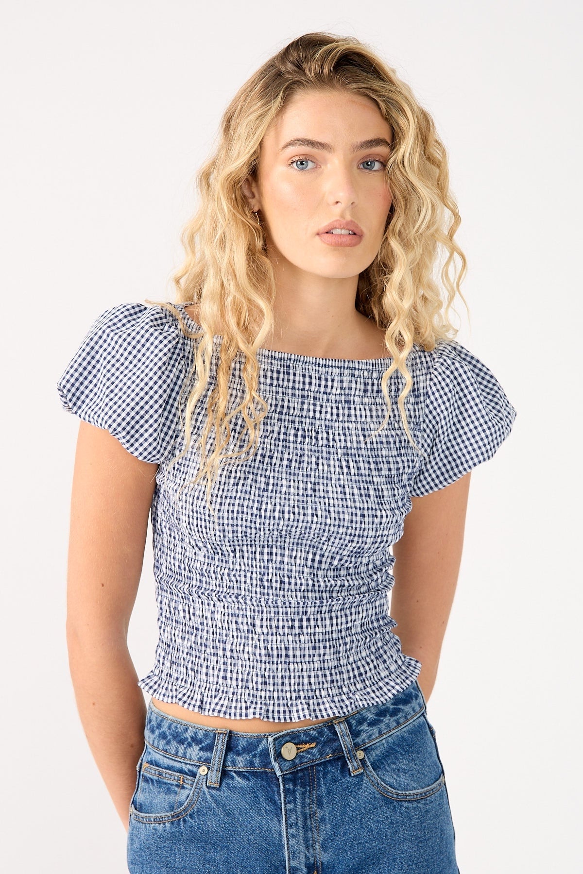 Corinne Gingham Short Sleeve Top Navy Print