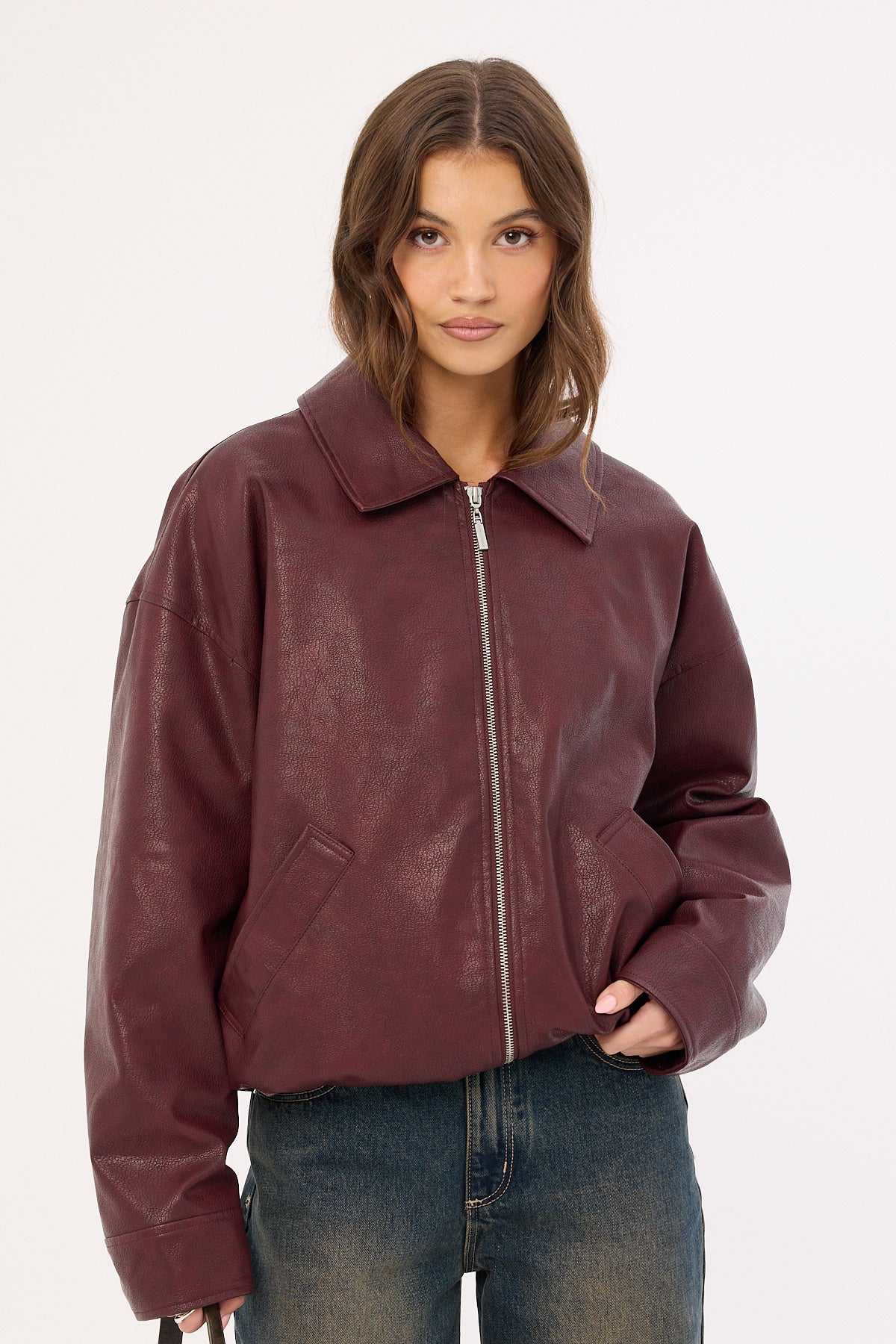 Robin Washed Bomber Jacket Burgundy
