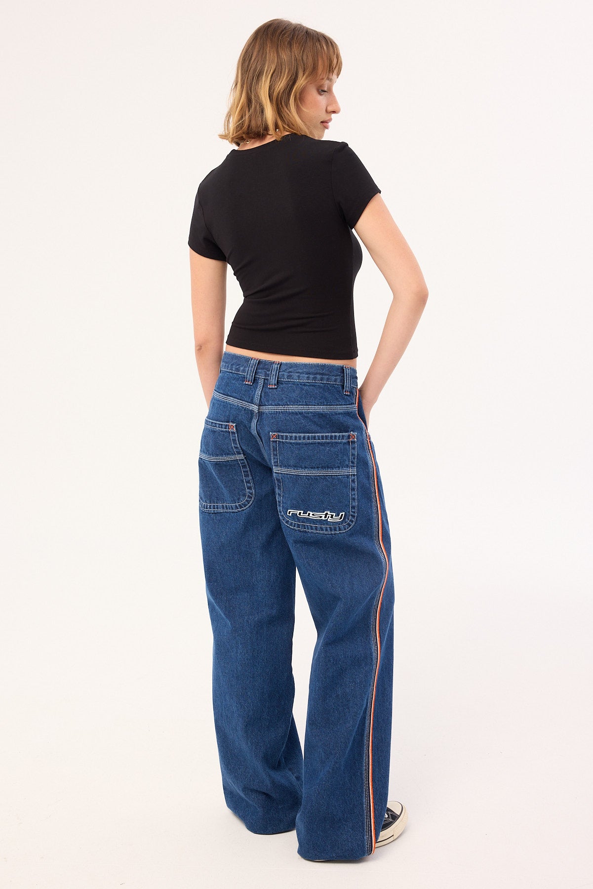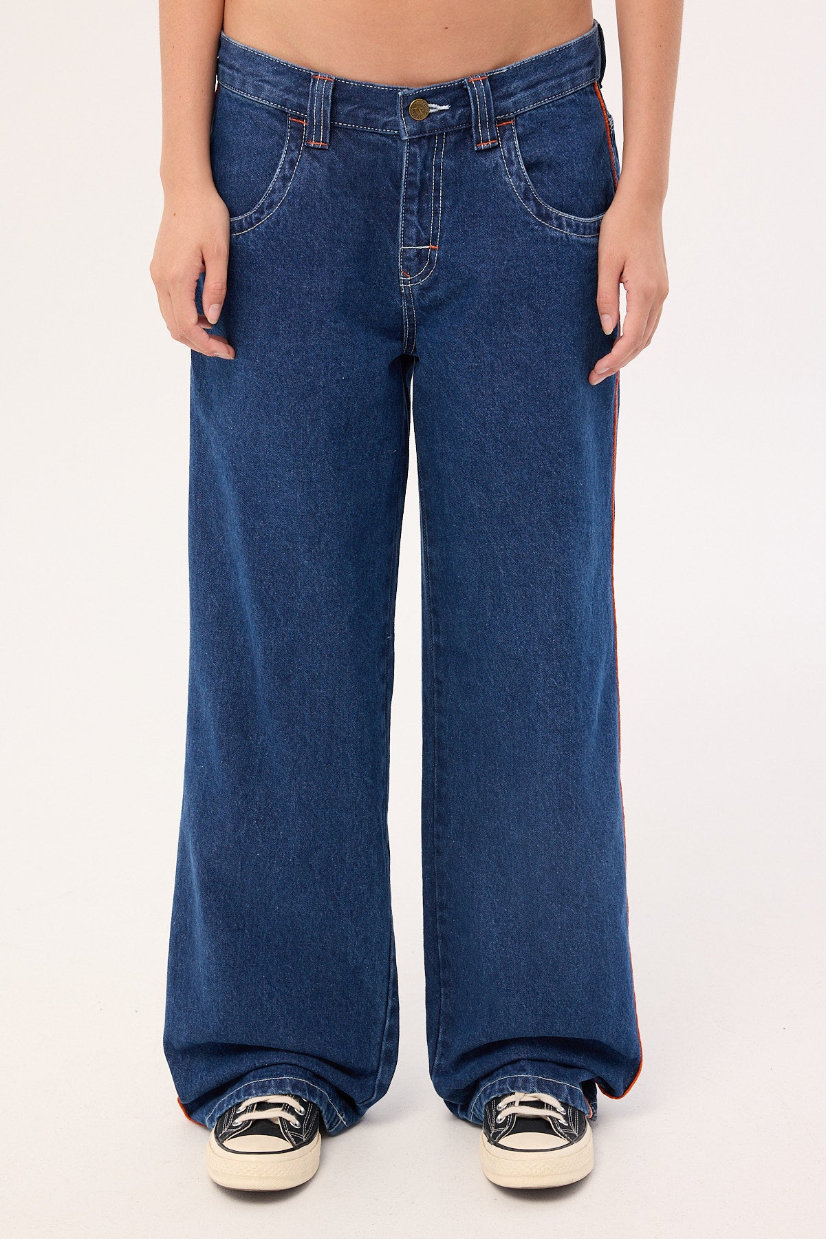 Flip Mommy Low Rise Wide Leg Denim Jean Deep Sea Blue