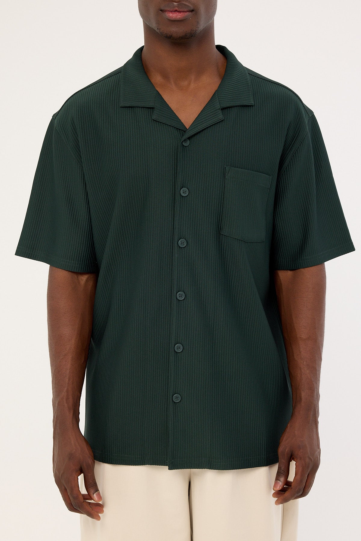 Austin Pleated Resort Shirt Dark Green