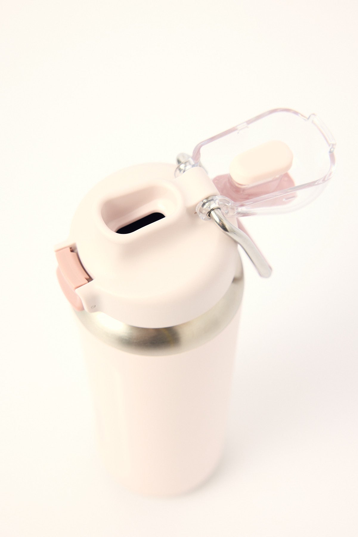 • The 24-ounce Wellspring Bottle keeps your water or beverage cold for hours, thanks to double-wall vacuum insulation. To drink, slide the button down, and the leak-resistant lid pops open to reveal the sculpted drink spout. When you’re done, flip the top shut to lock it tight.