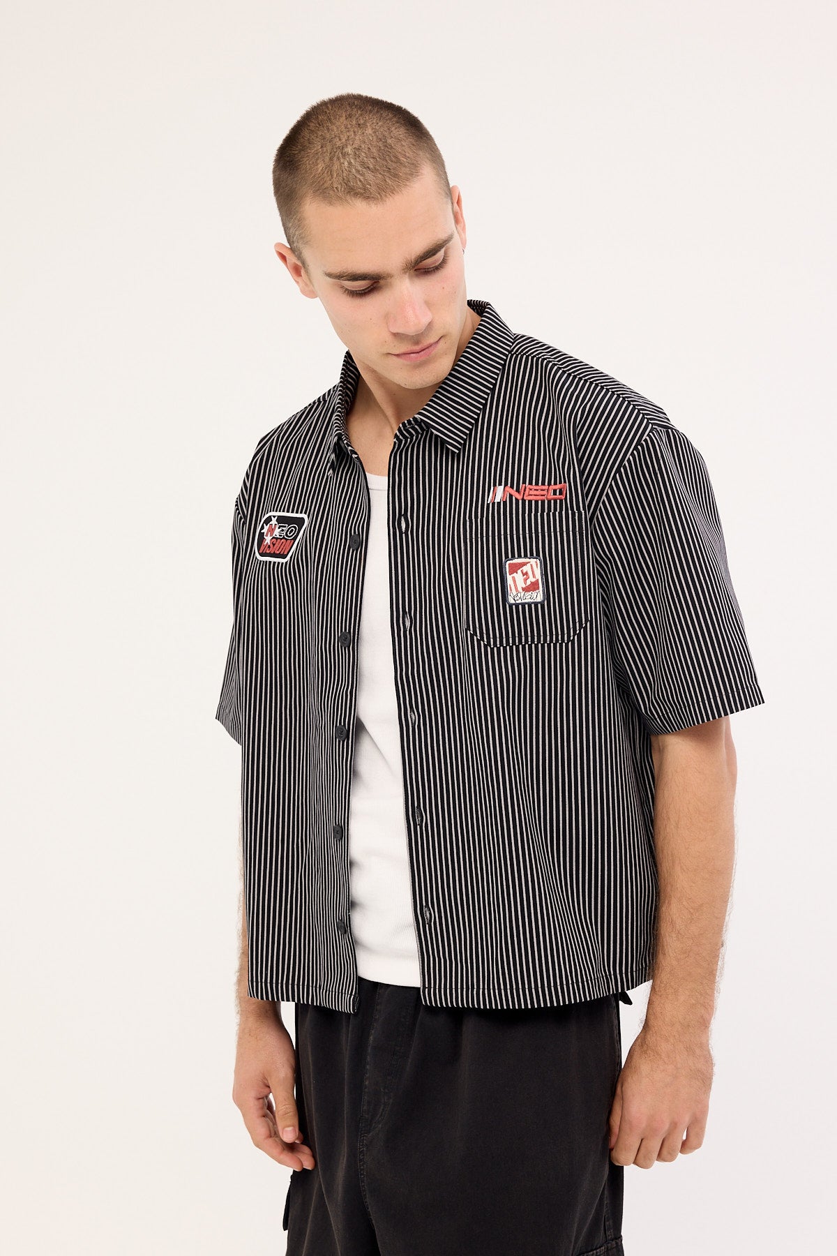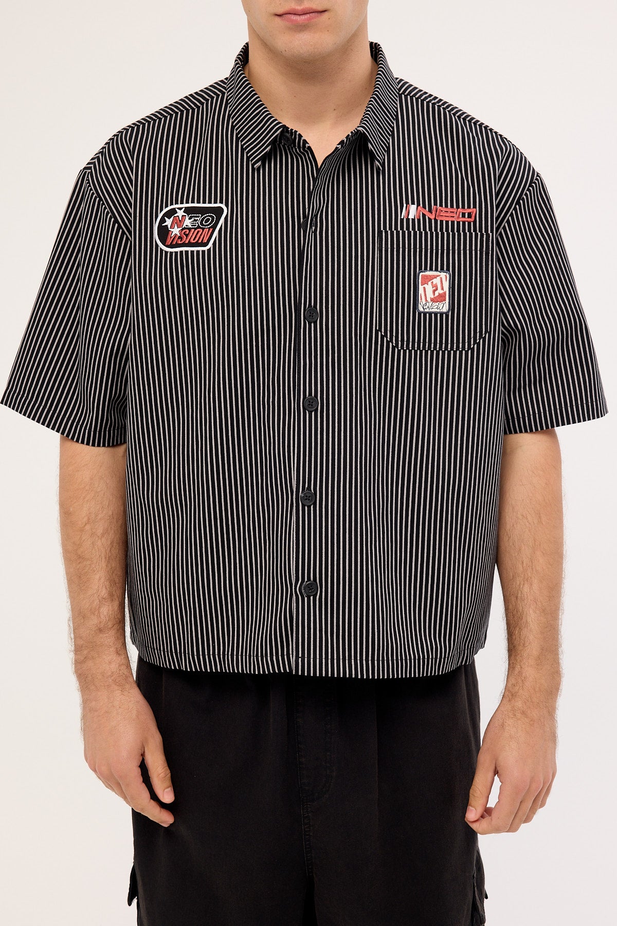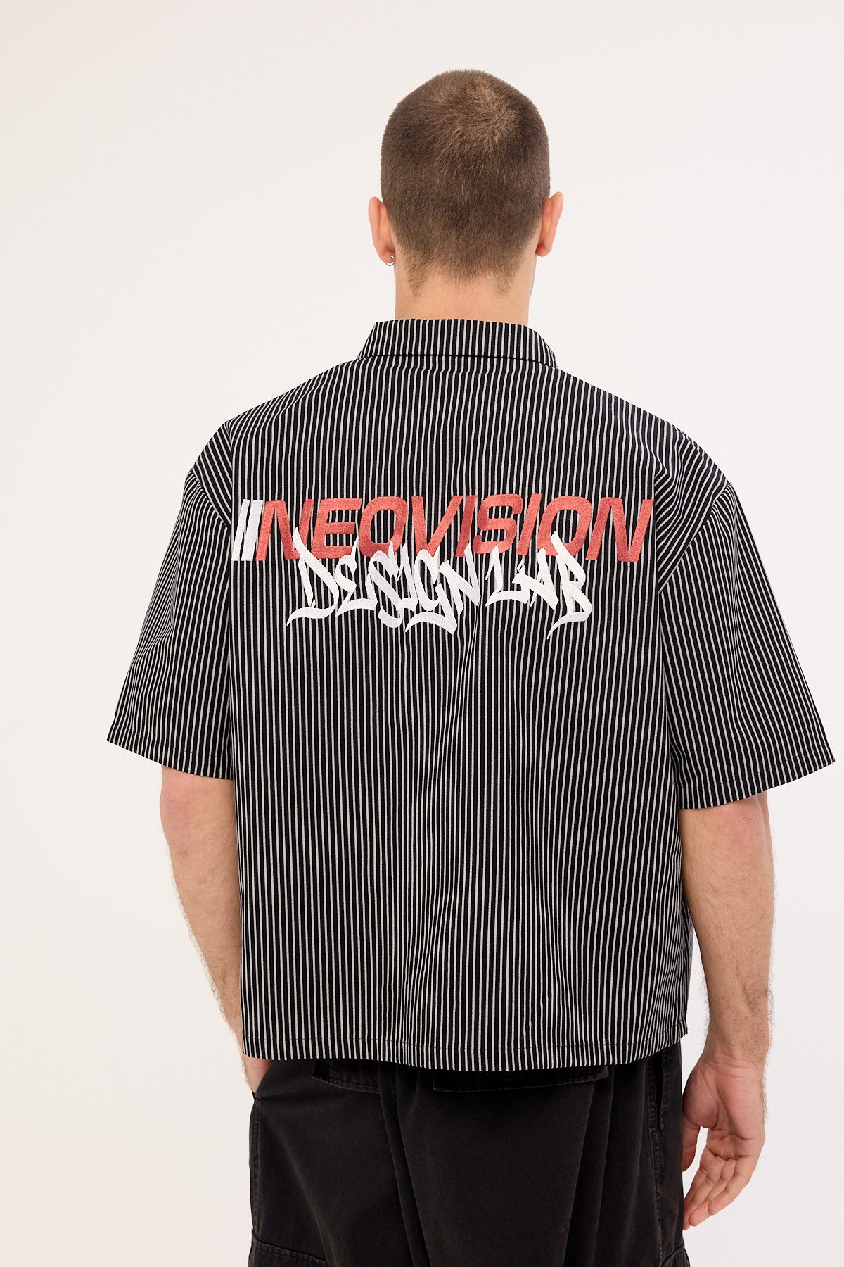 Zephyr Oversize Cropped Shirt Black/Grey Stripe