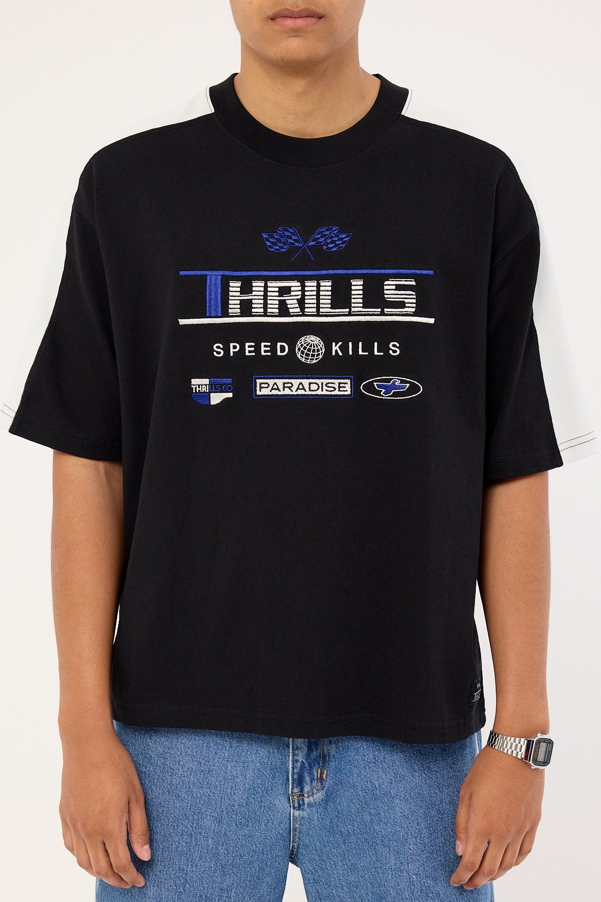 Rapid Fire Panel Box Fit Oversize Cropped Tee Black