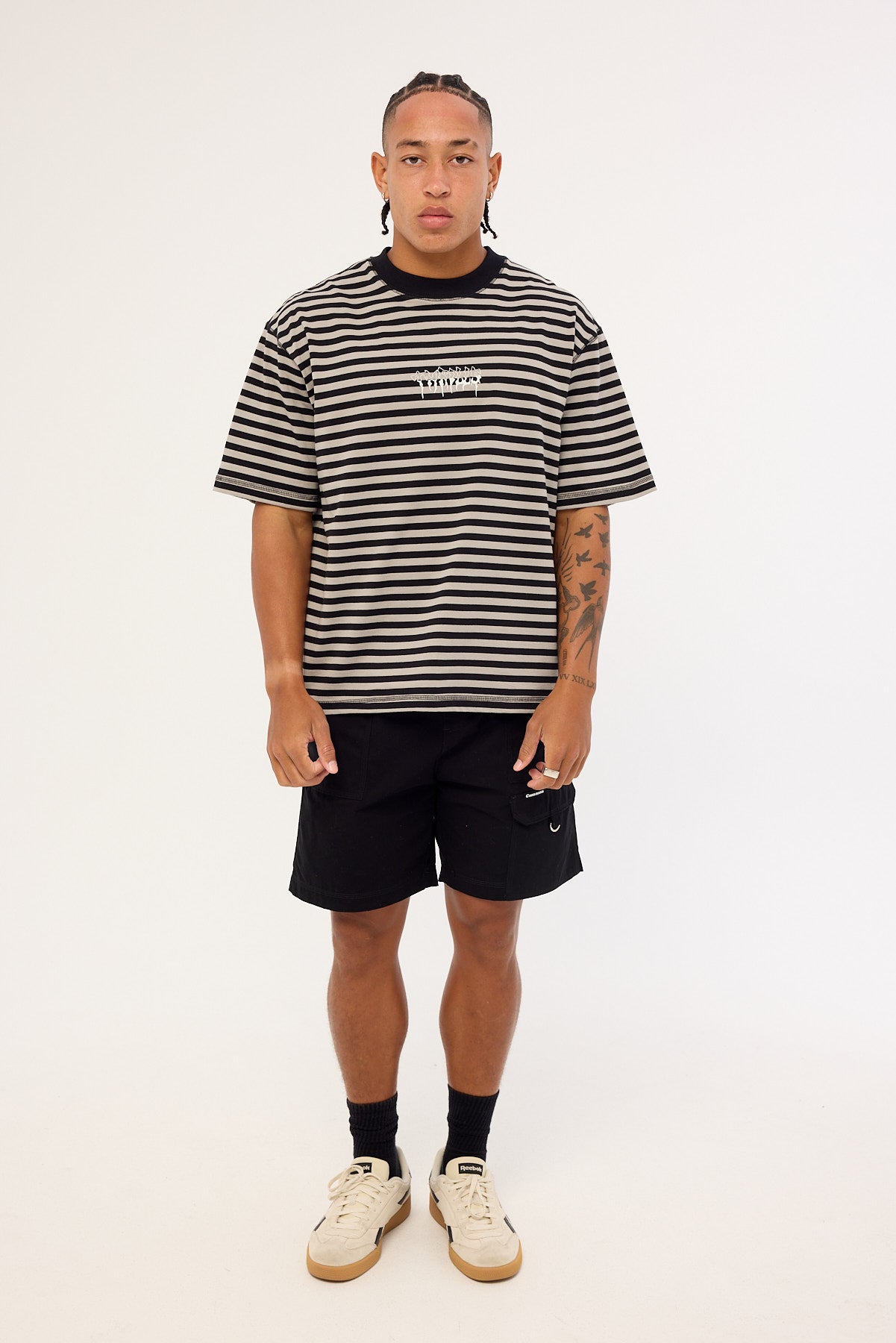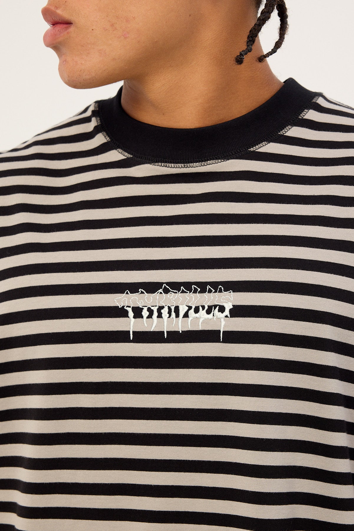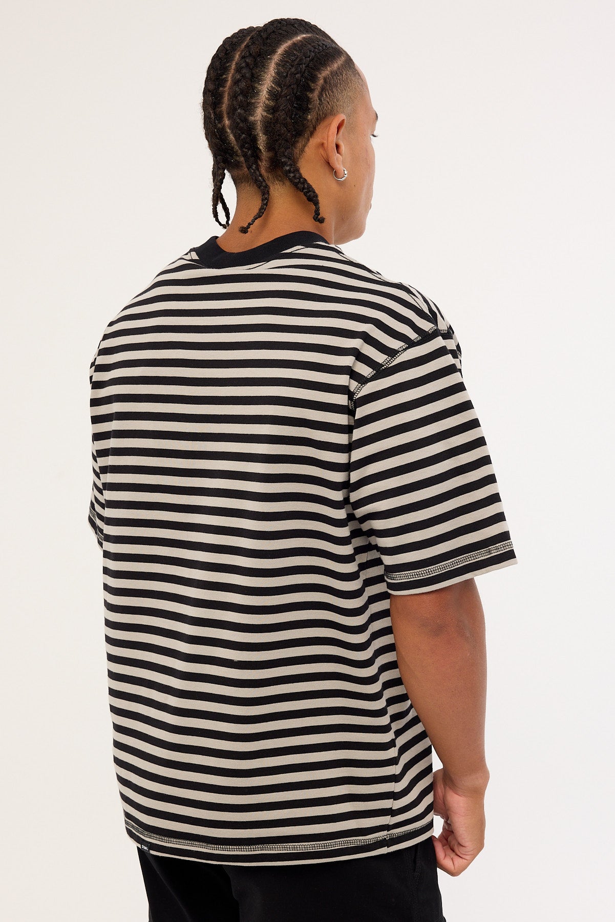 Shattered Stripe Box Fit Oversize Cropped Tee Grey Stripe