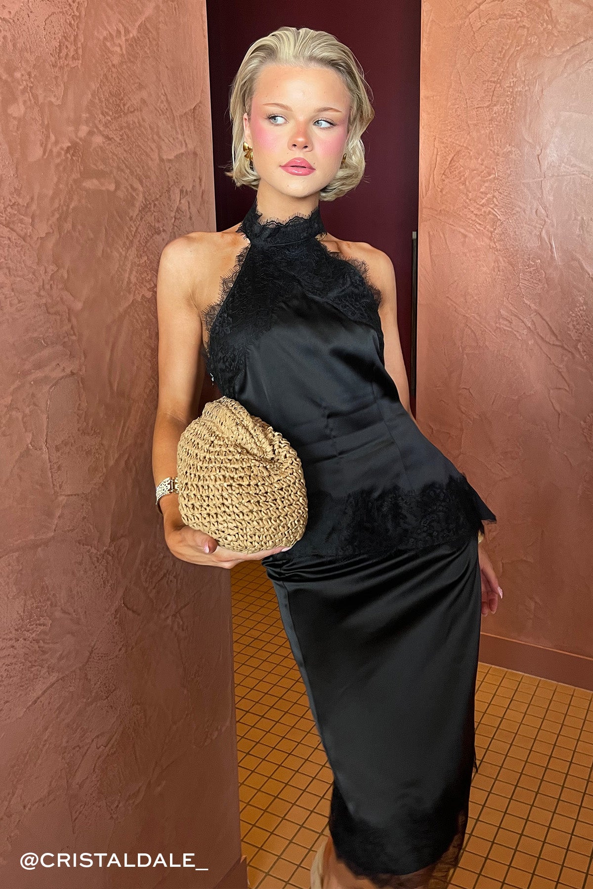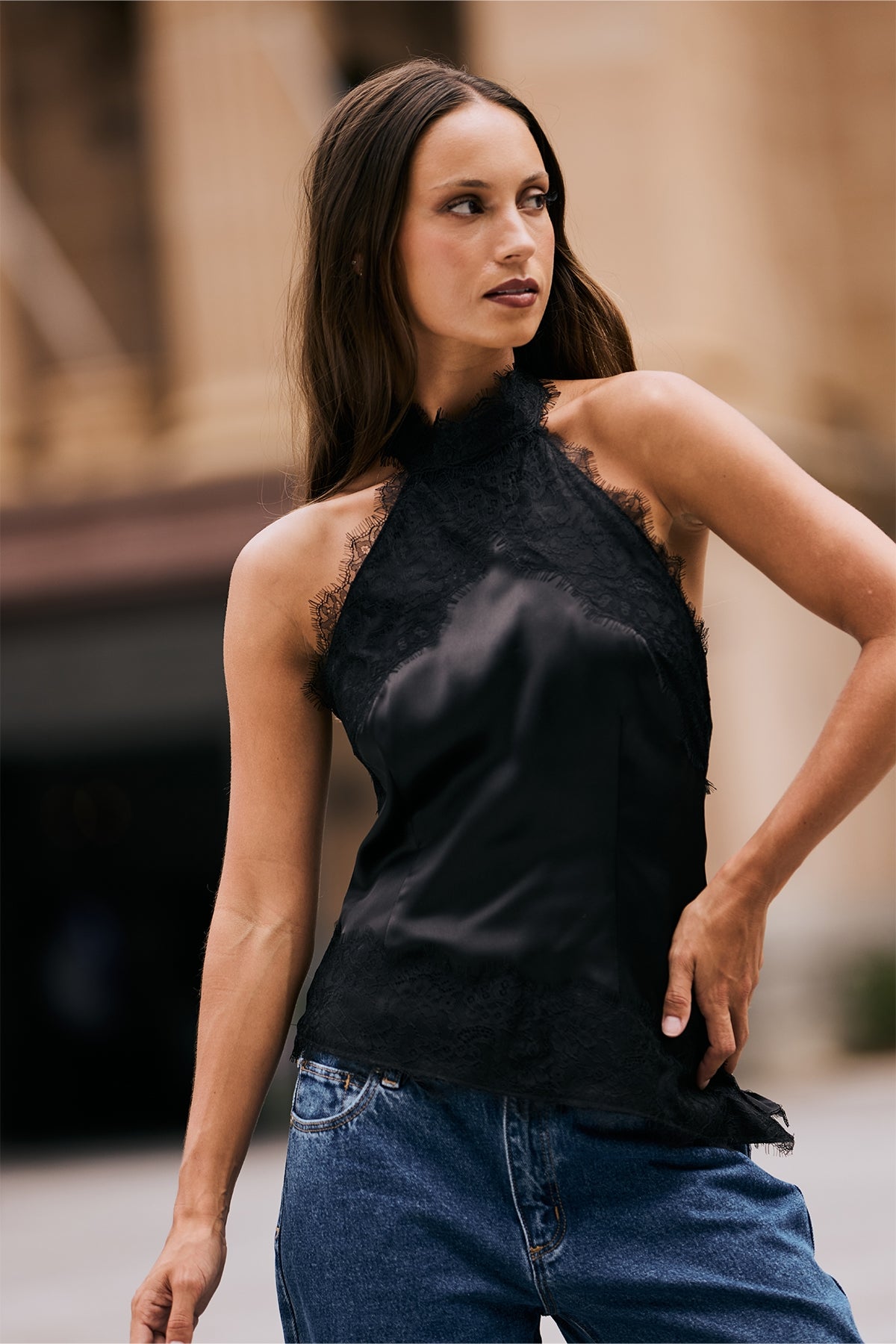 Alexa Lace Halter Top Black