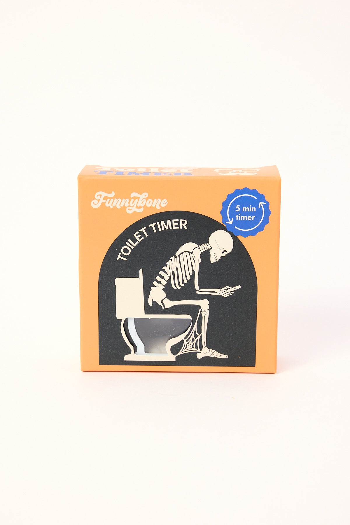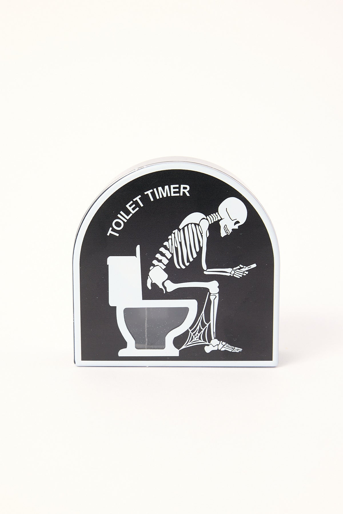 • Keep bathroom breaks from turning into eternity with this hilarious Toilet Timer.This unique hour glass-style timer features a skeleton patiently waiting on the throne, reminding everyone that time is ticking!