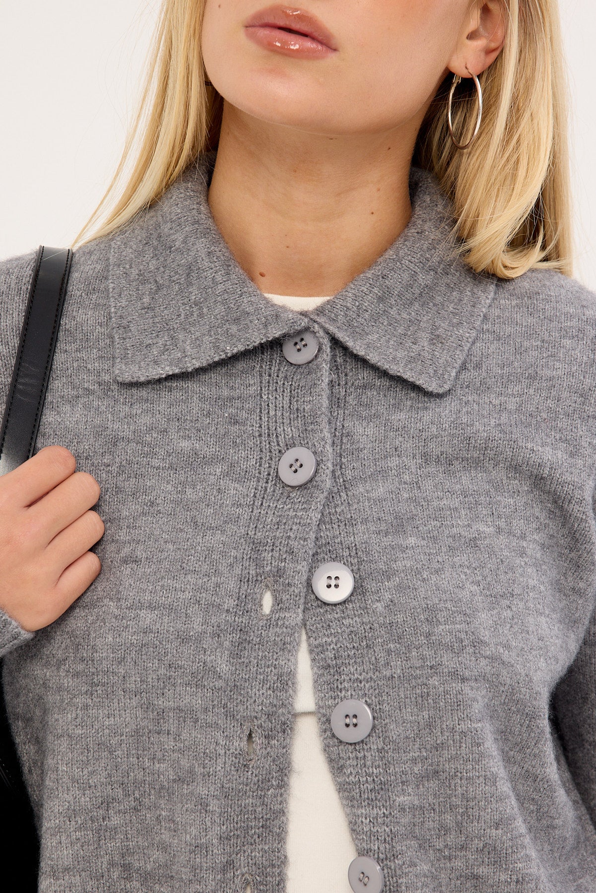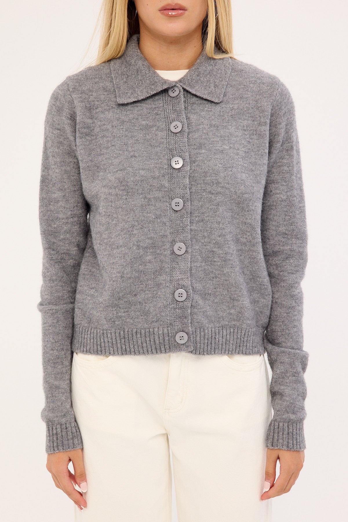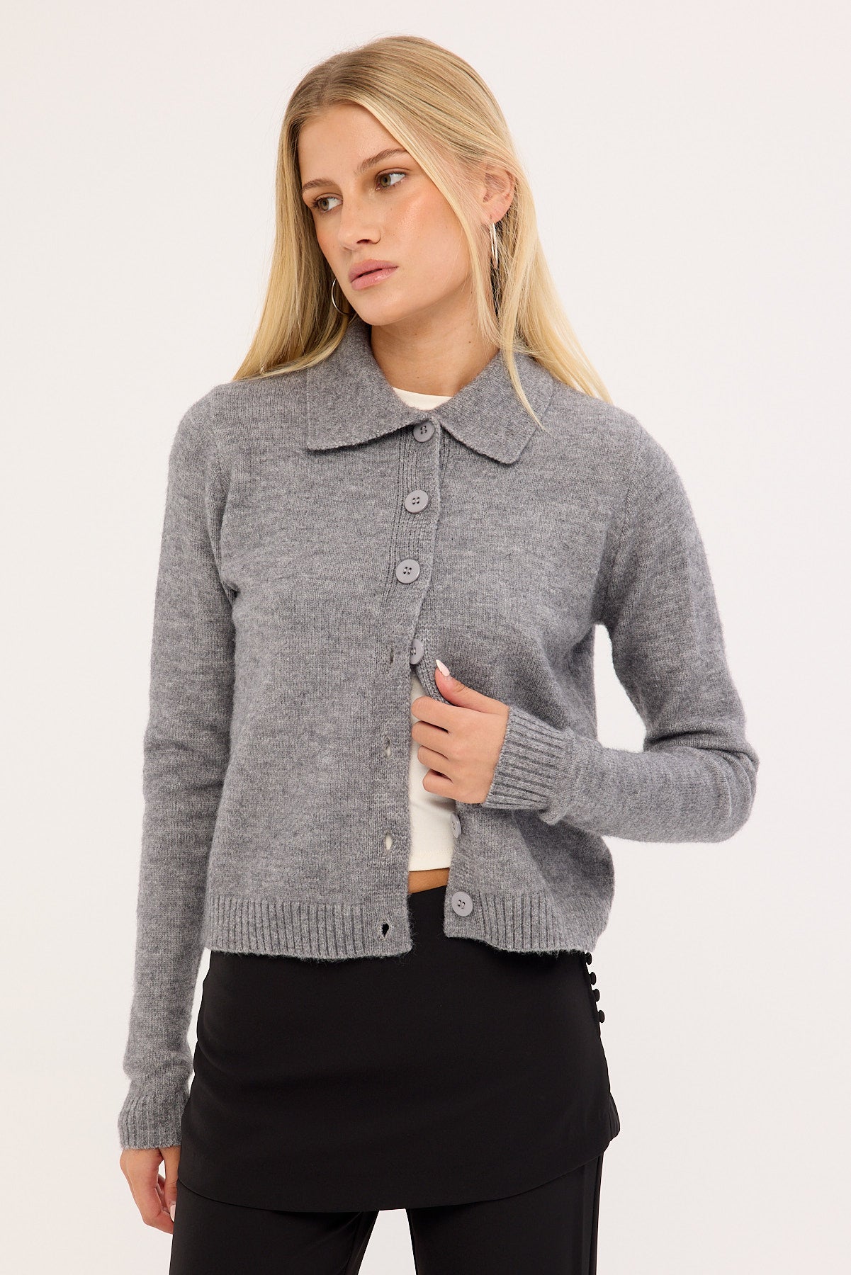 Kleo Collared Knit Cardigan Grey Marle