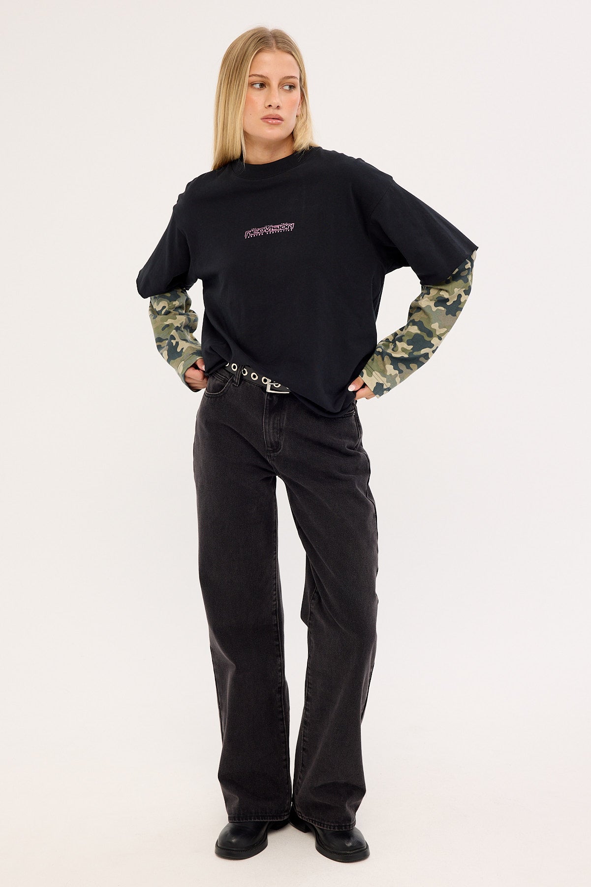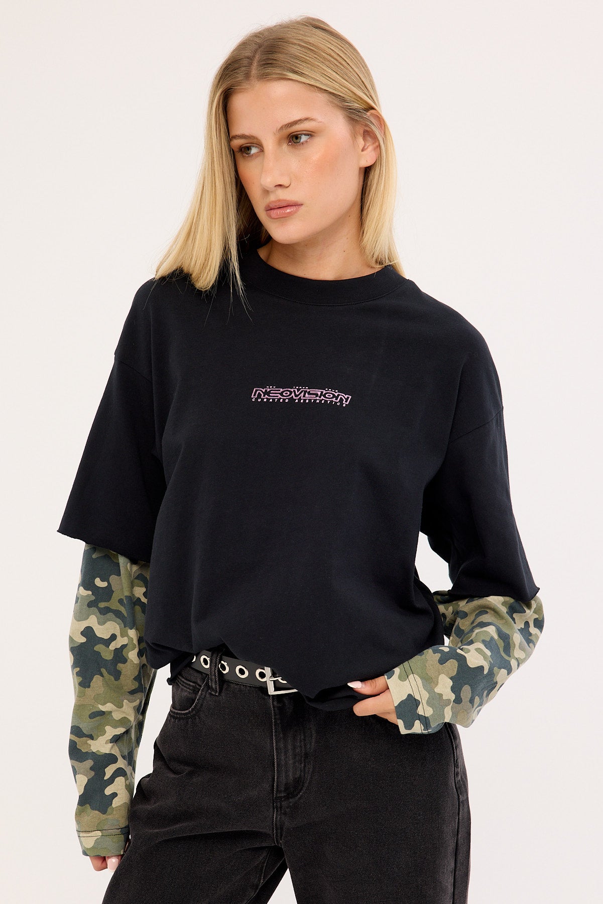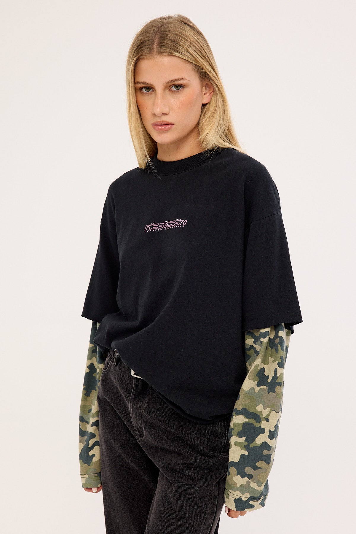 Dualform Layered Long Sleeve Tee Black/Camo