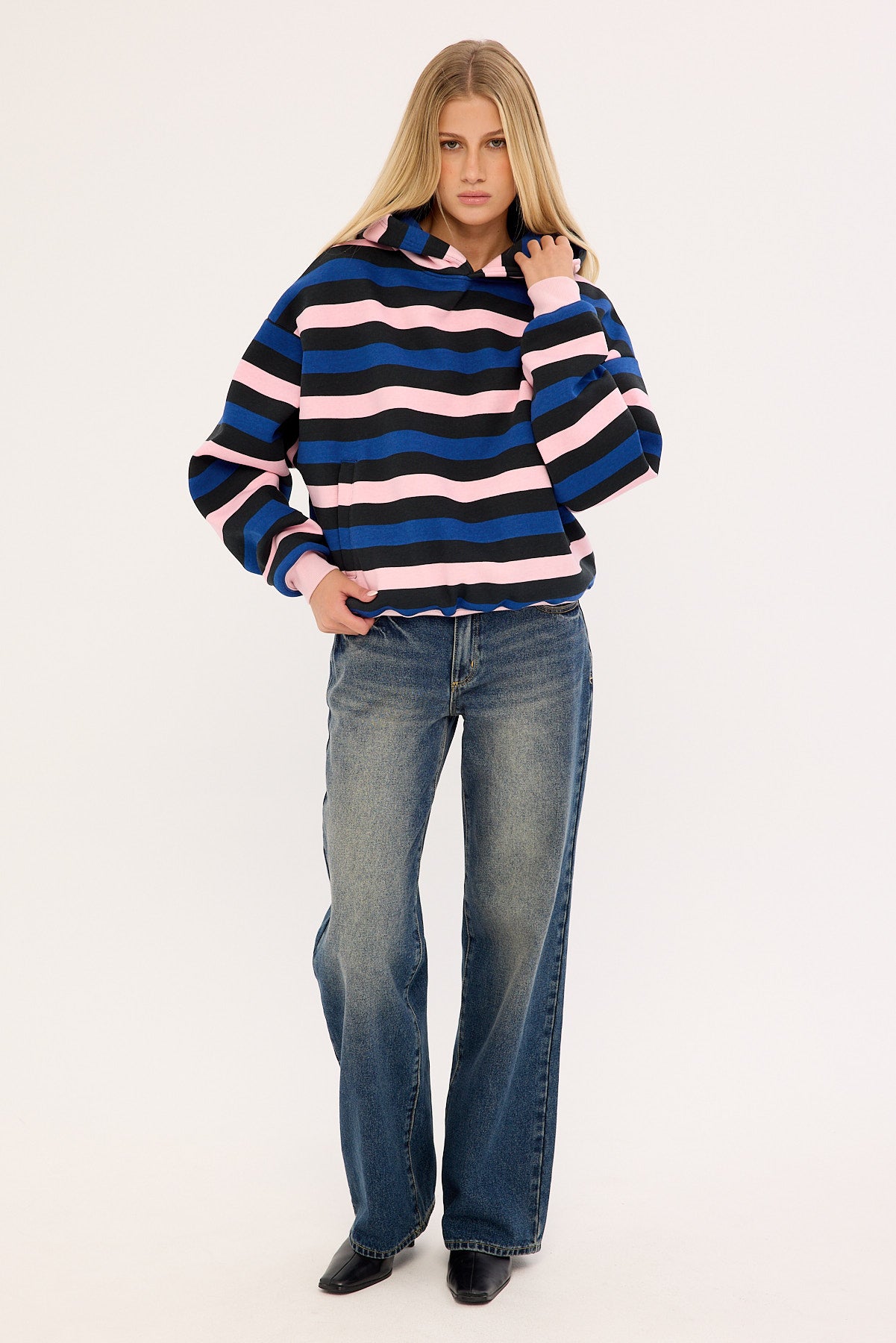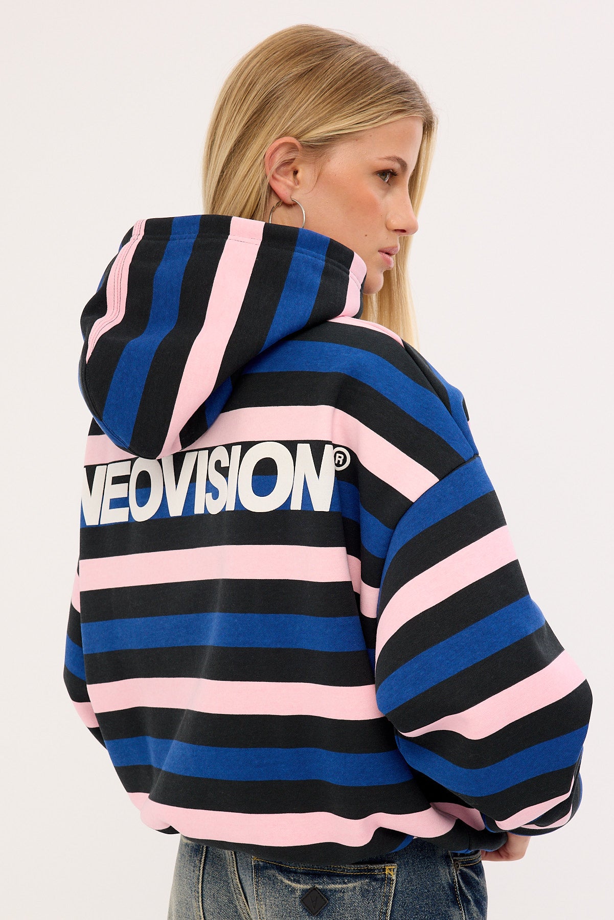 Nova Cropped Oversized Hoodie Black Stripe