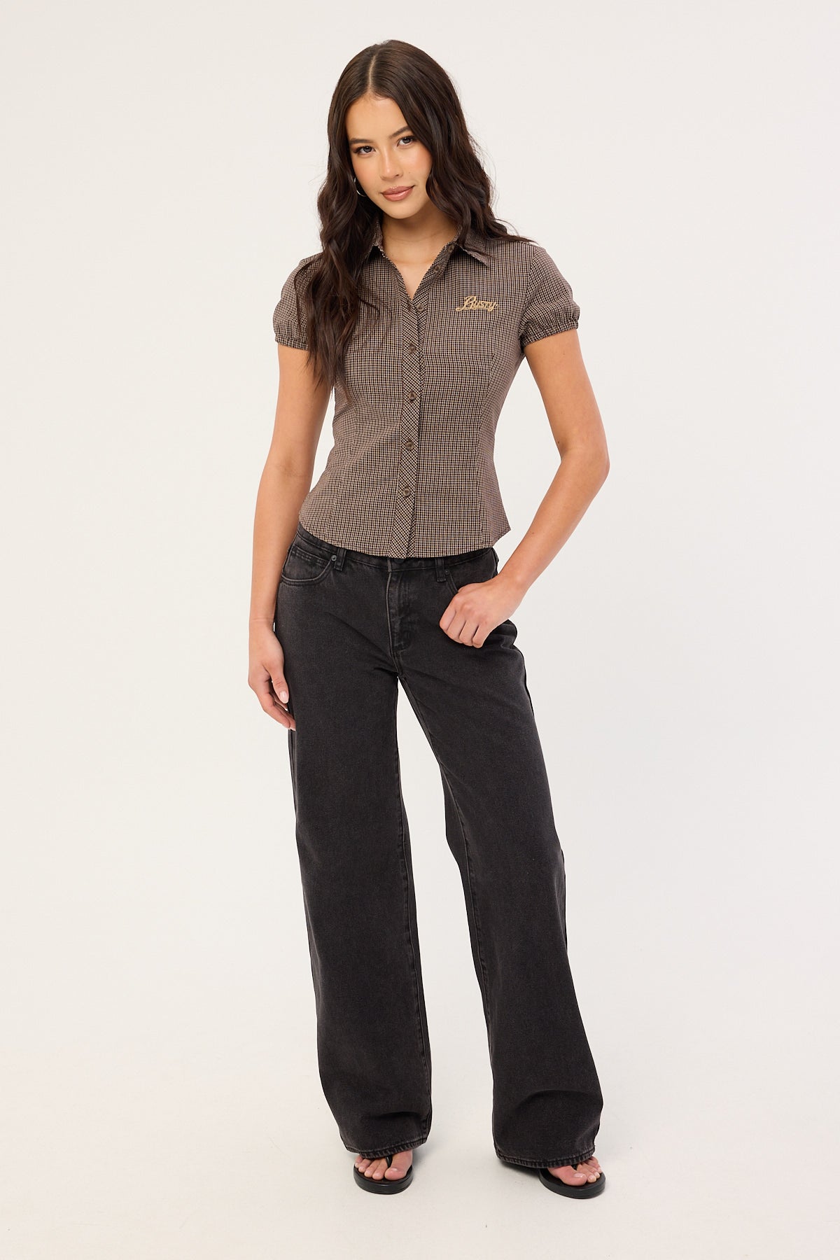 Missy May Check Shirt Java Plaid