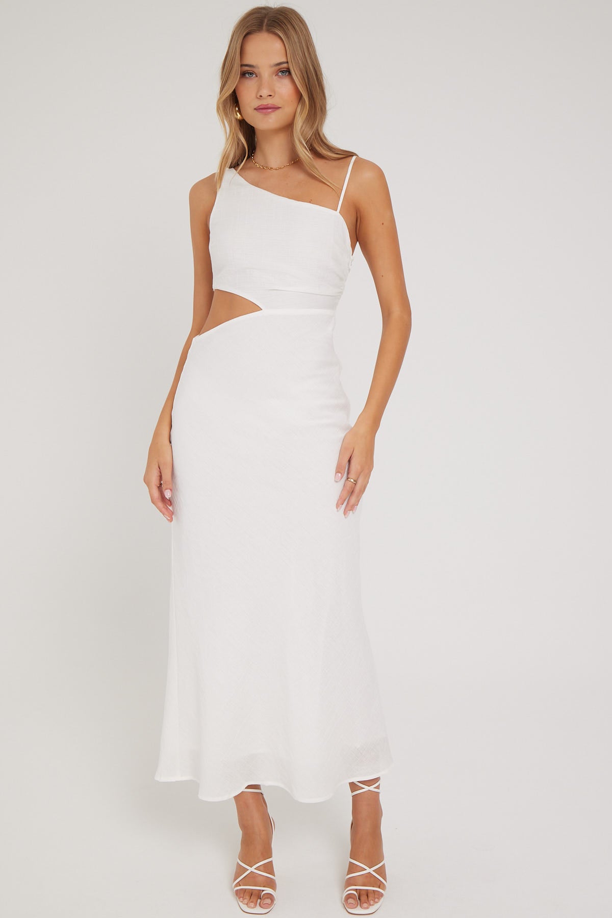 Golden Hour Textured Midi Dress White