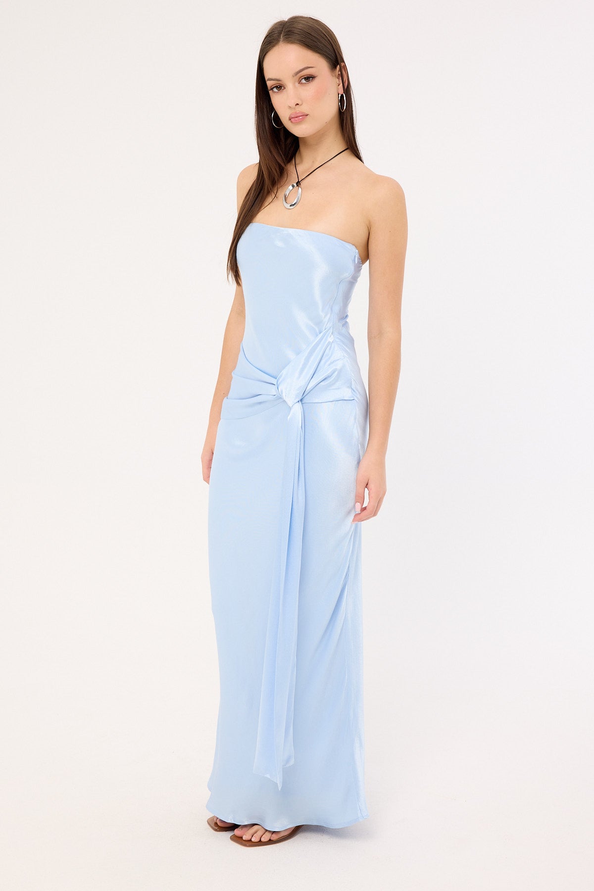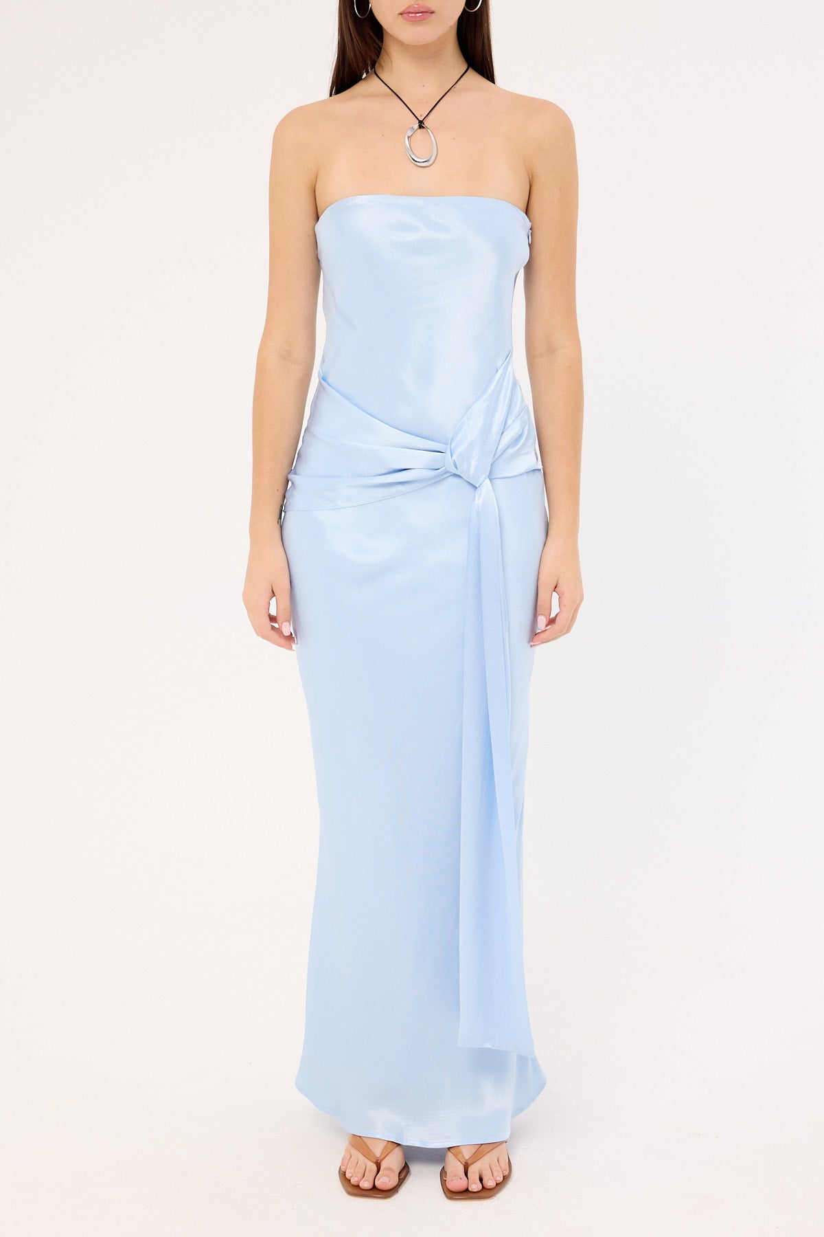 Angie Tie Front Maxi Dress Baby Blue