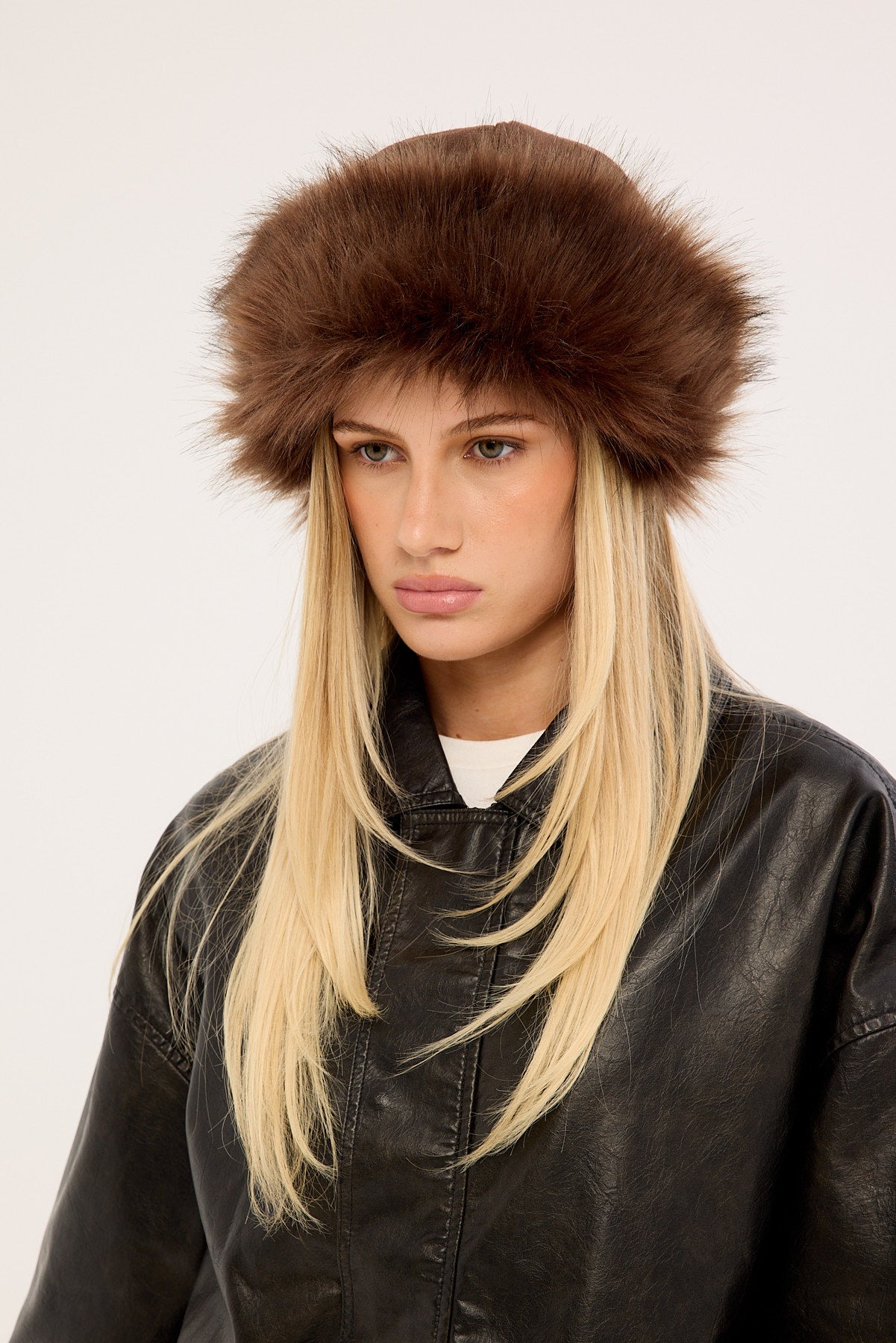 Suede & Faux Fur Hat Brown