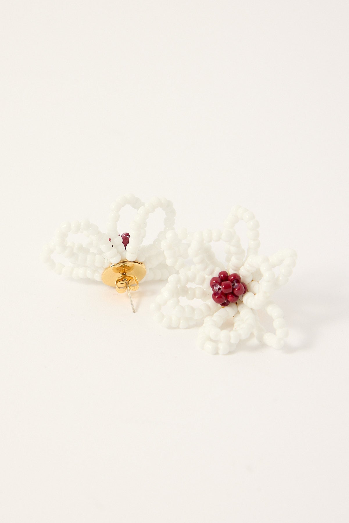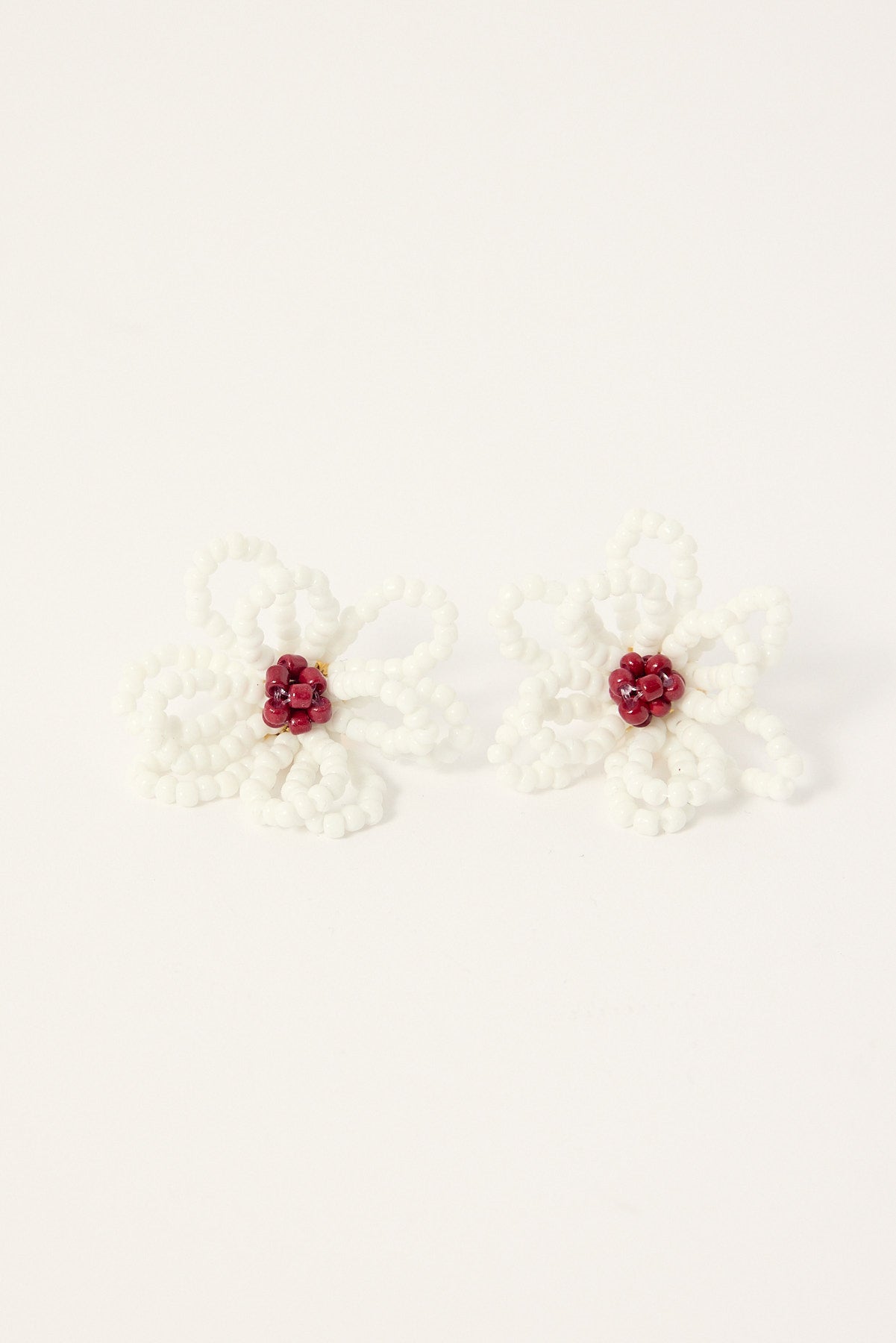 Elina Beaded Flower Earrings White