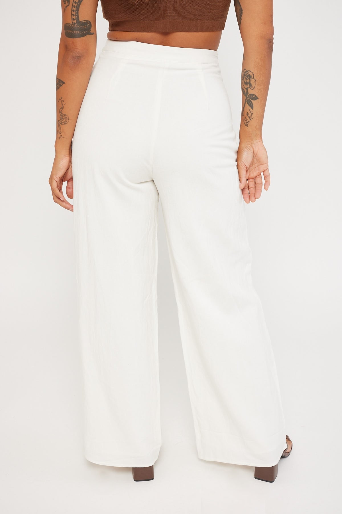 Flounce Full Length Linen Pant White