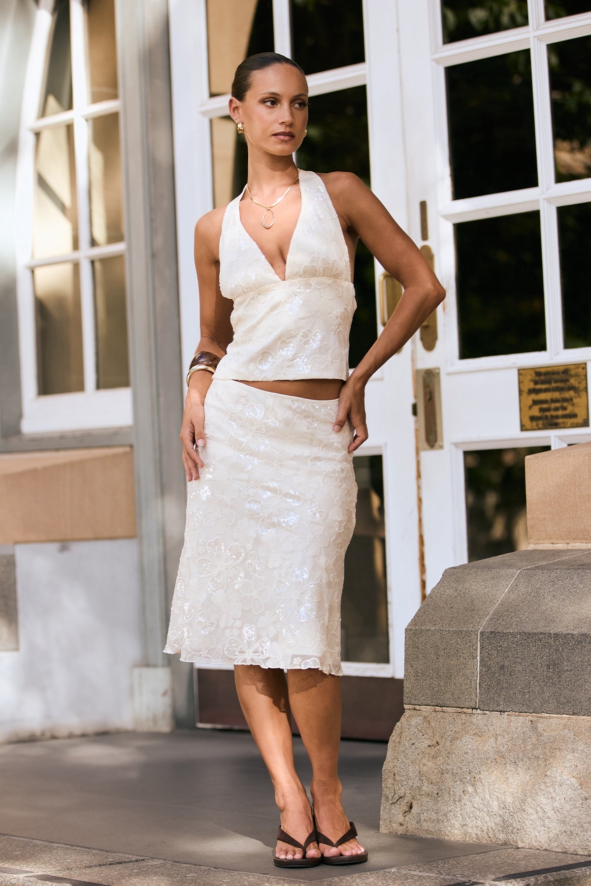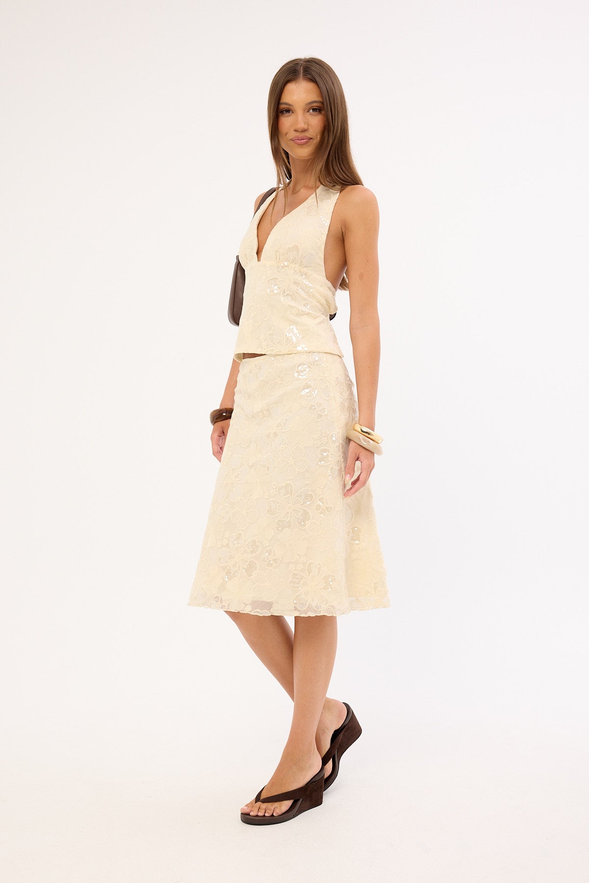 Isabel Sequin Midi Skirt Cream