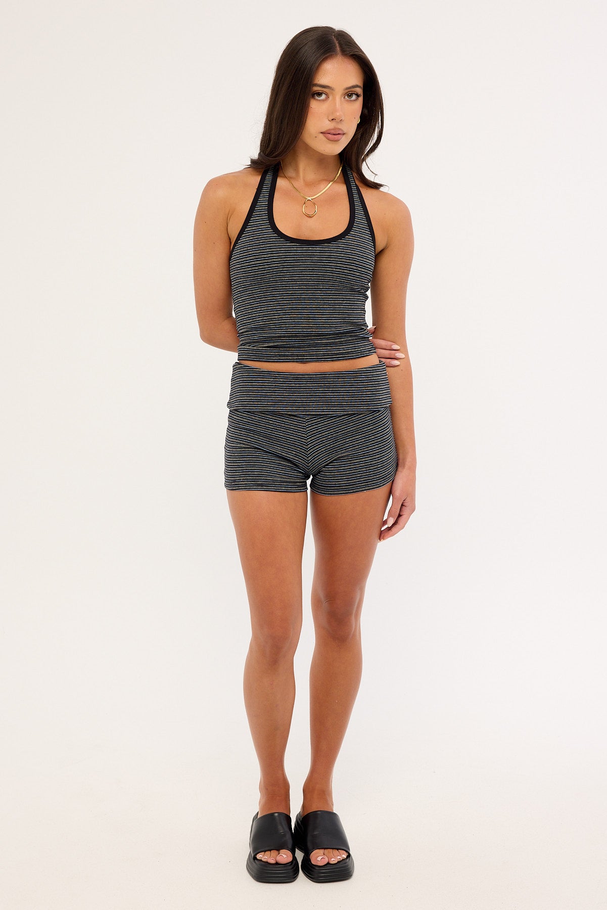 Double Vision Stripe Booty Shorts Washed Black