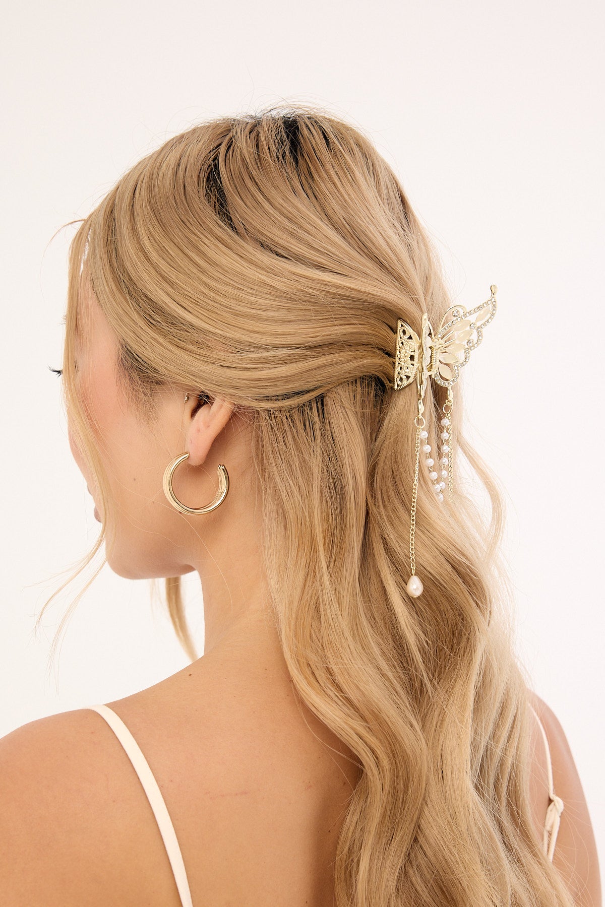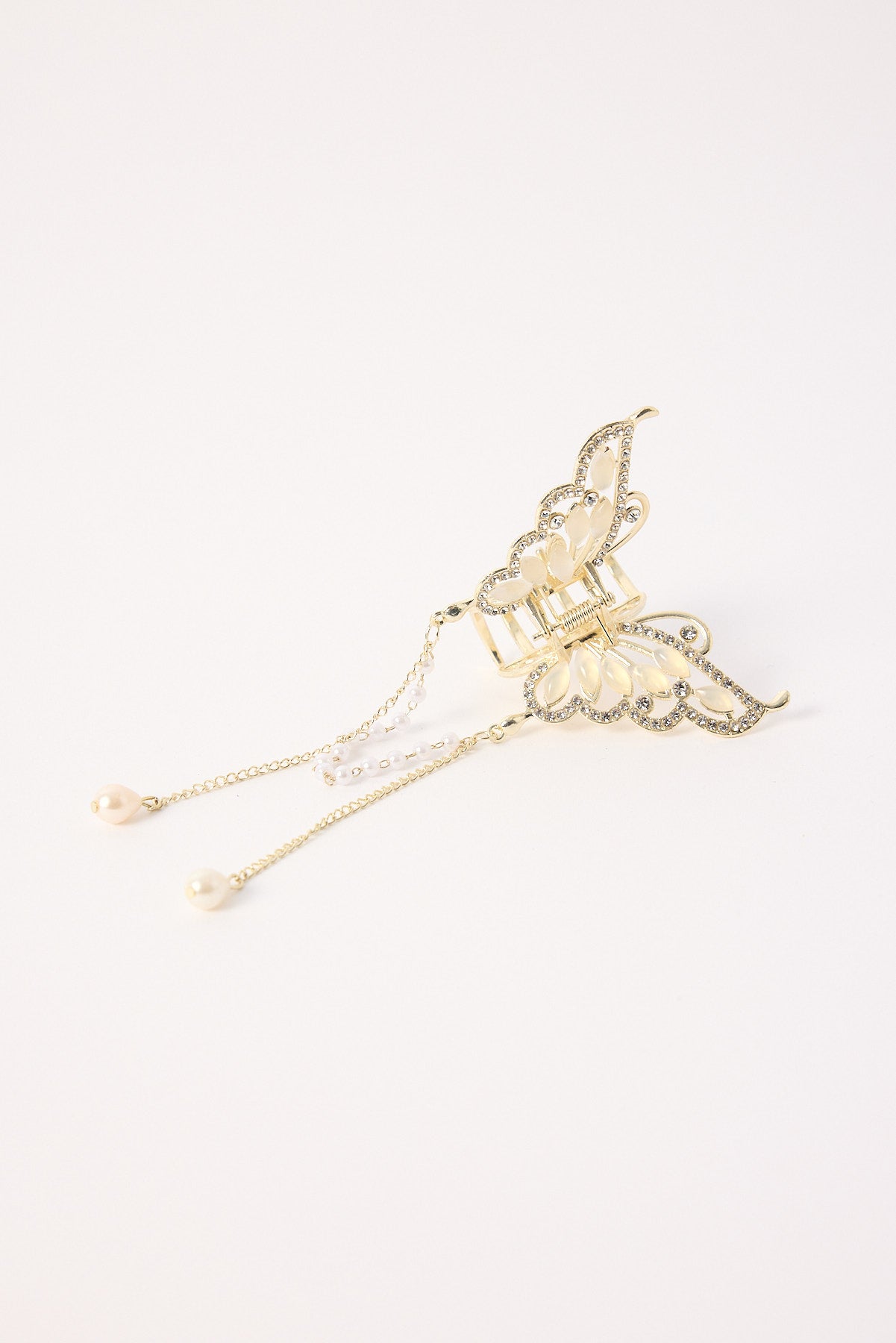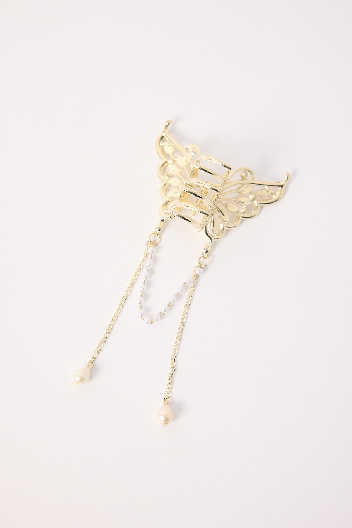 Butterfly Pearl Drop Hair Claw Clip Gold