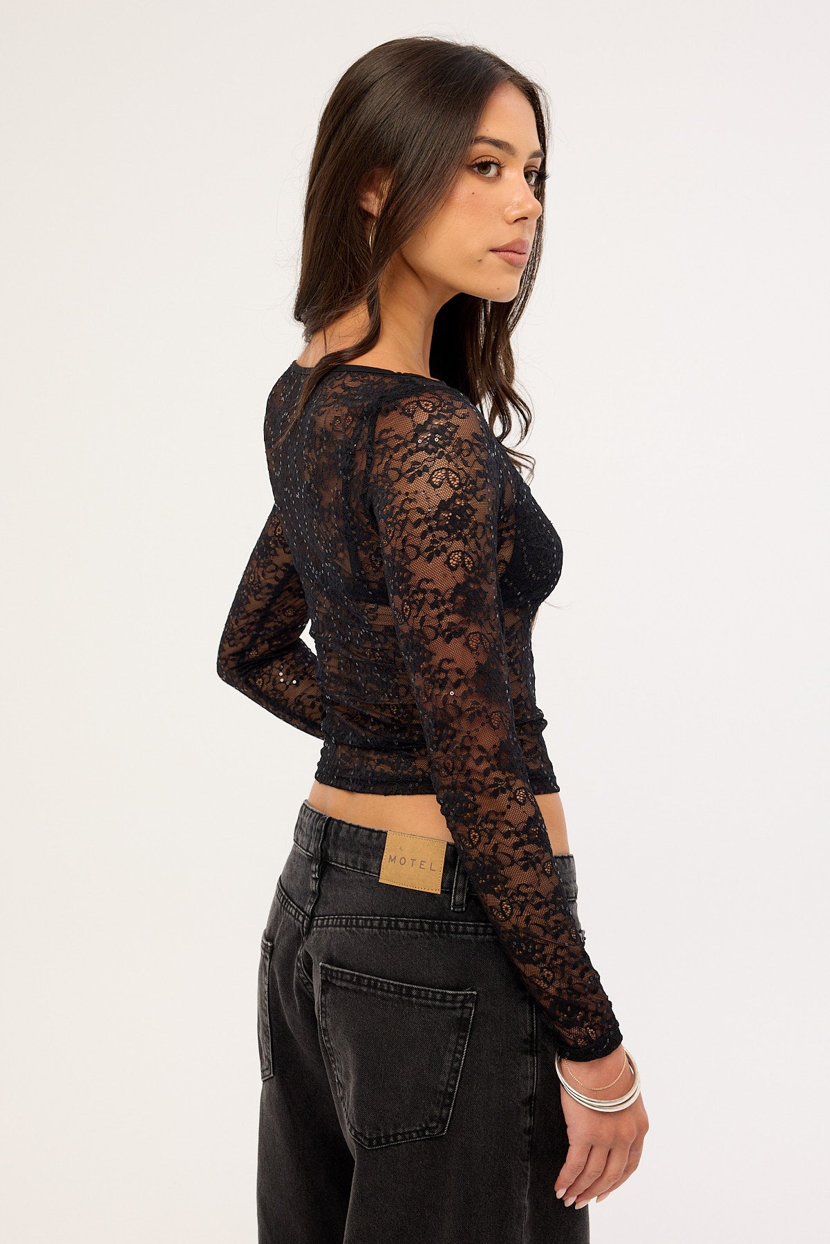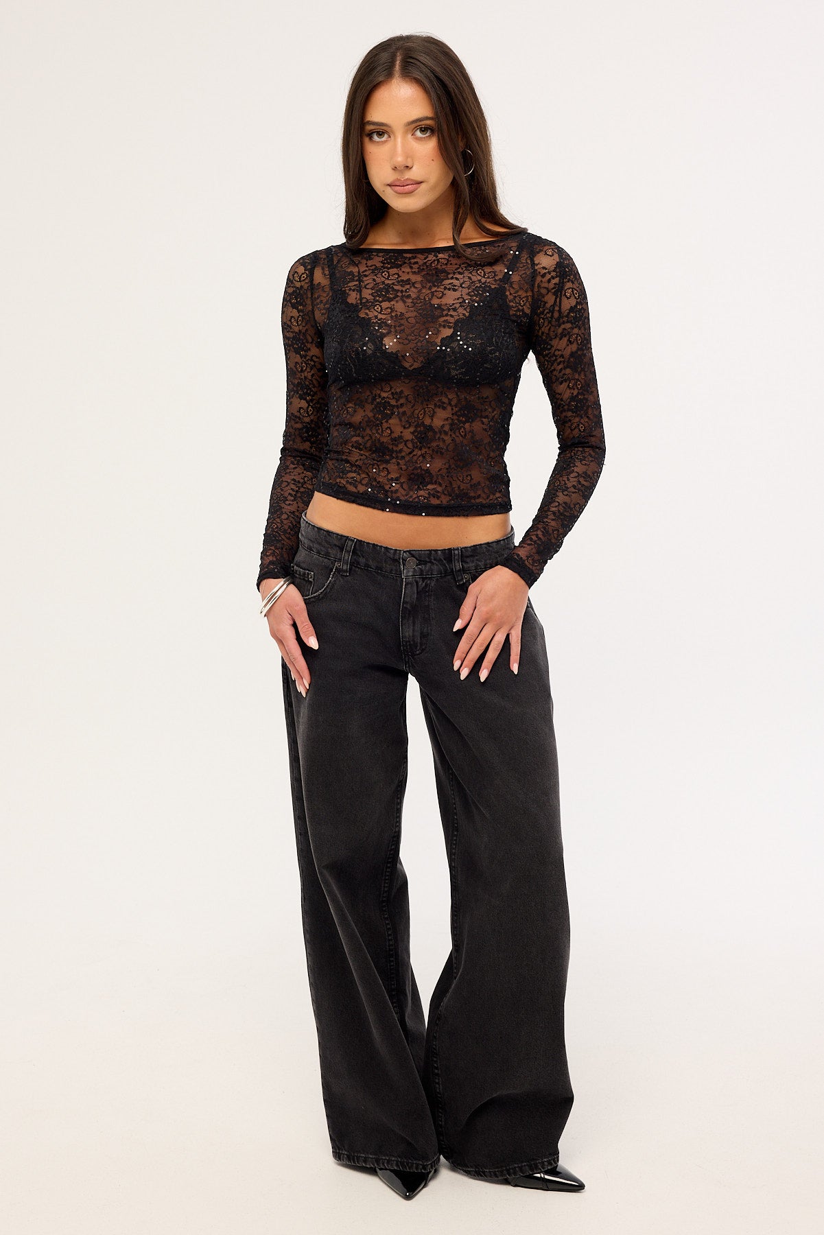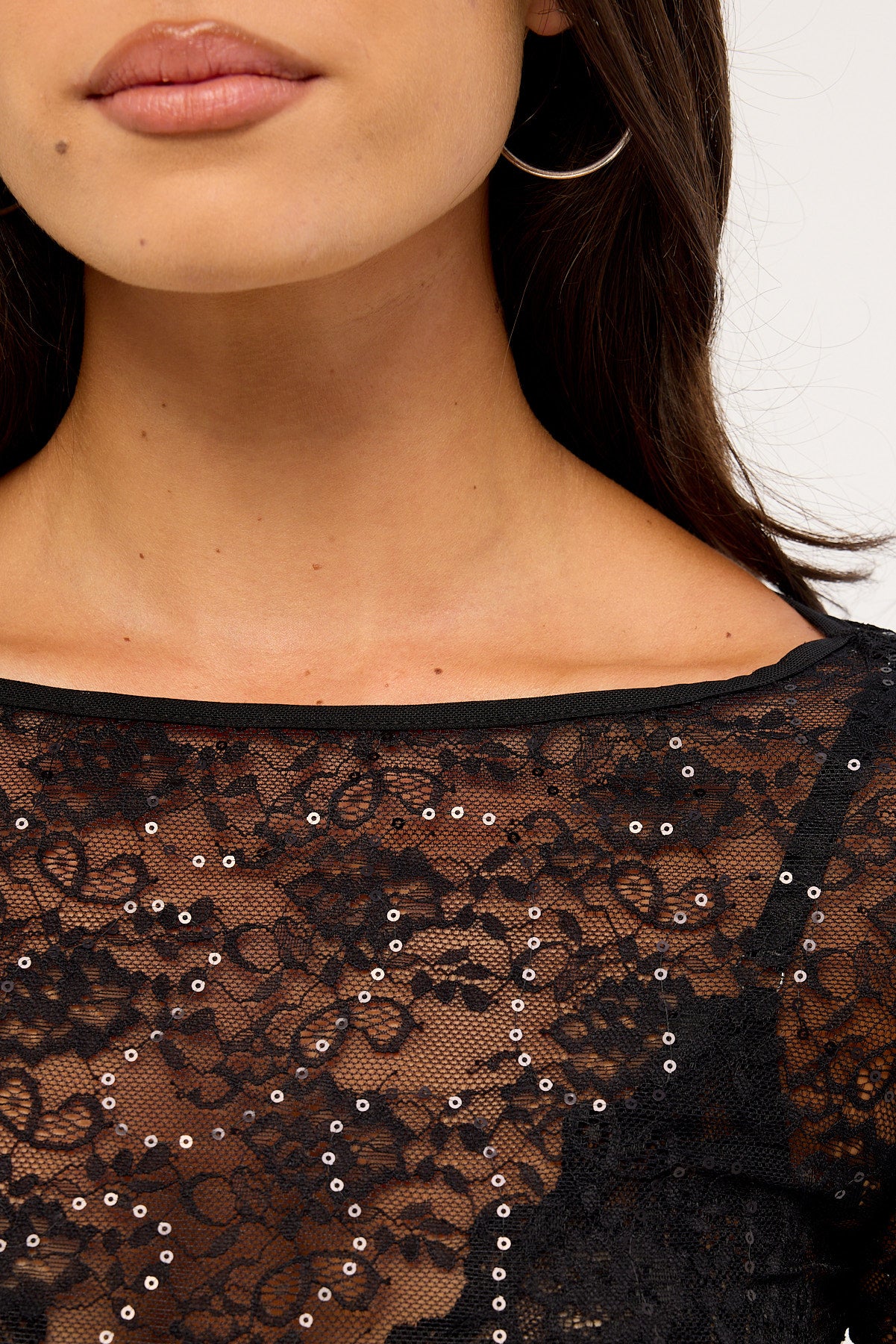 Mia Sequin Lace Long Sleeve Top Black